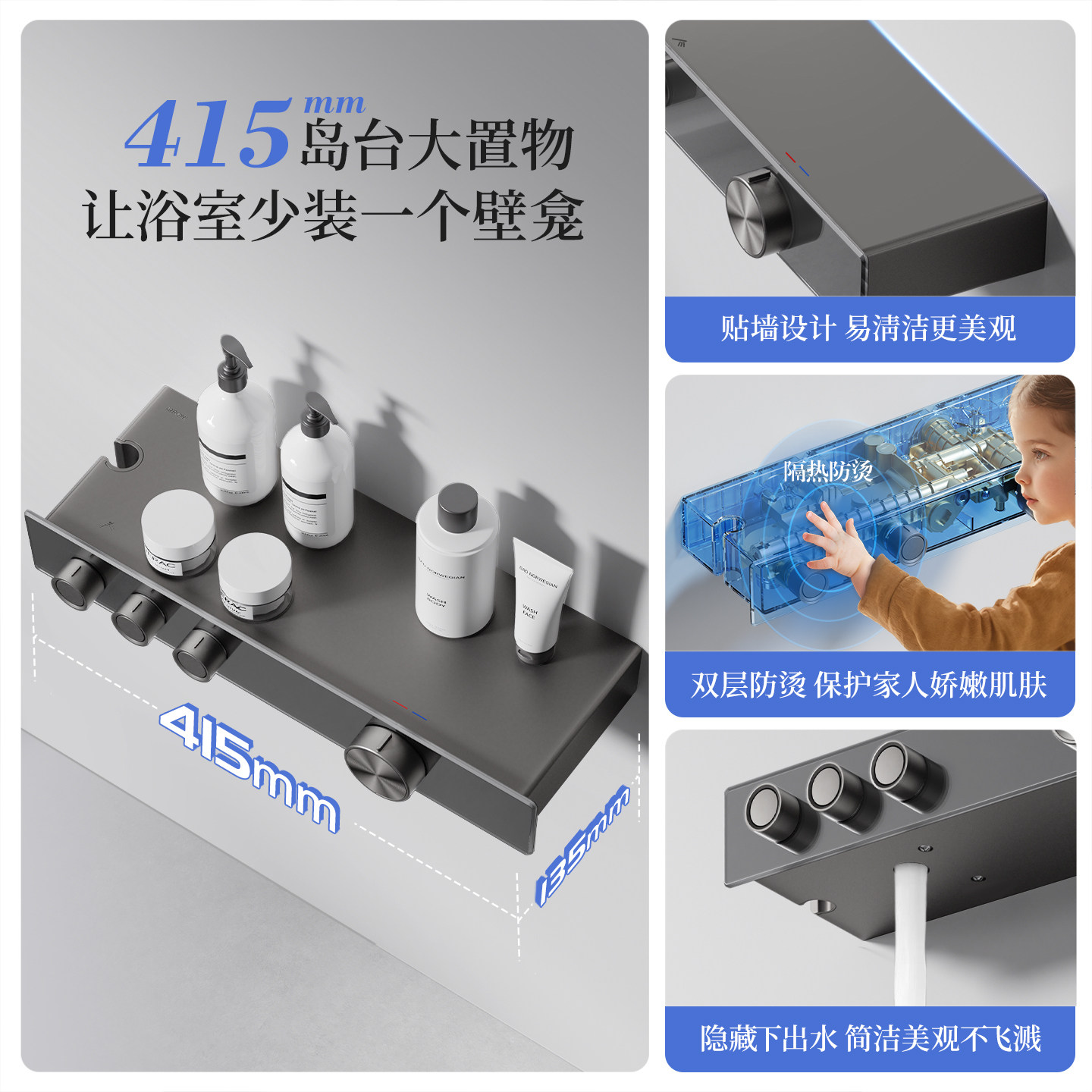 天科勒艾贝灵控Pro335mm恒温大顶喷置物台淋浴花洒龙头