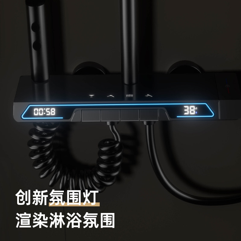 天Haier/海尔钢琴按键淋浴花洒套装数显卫生间明装家用置物星瀑花洒
