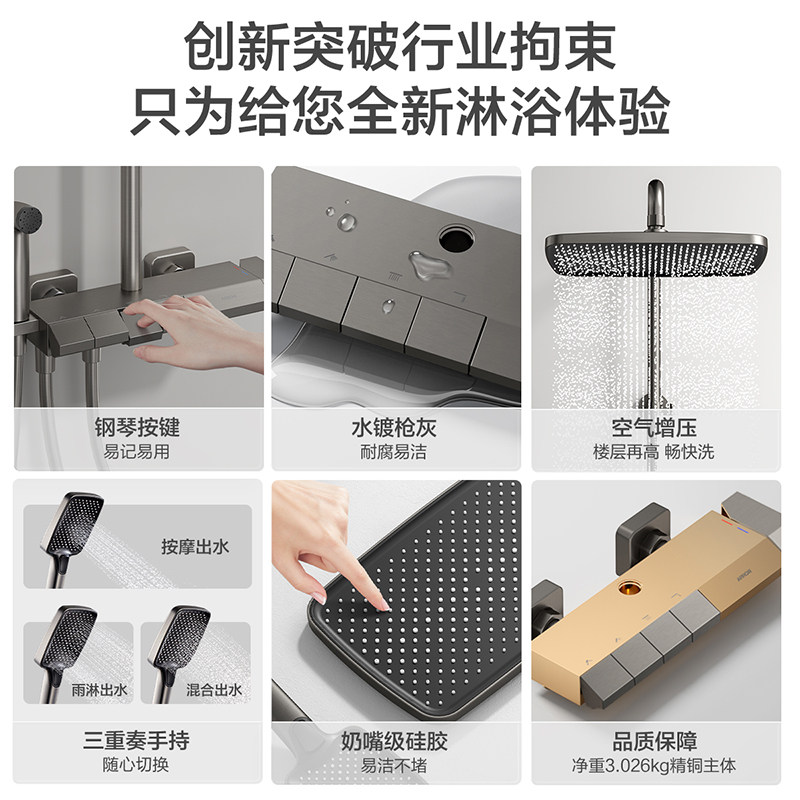 天猫箭牌枪灰色钢琴键恒温淋浴花洒套装家用卫生间淋浴器增压喷头卫浴