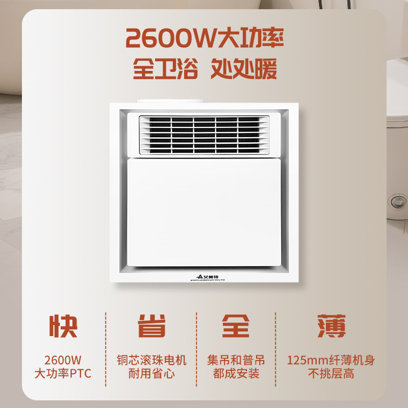 天猫艾美特风暖浴霸换气扇一体卫生间浴室专用暖风机双顶通用老式替换