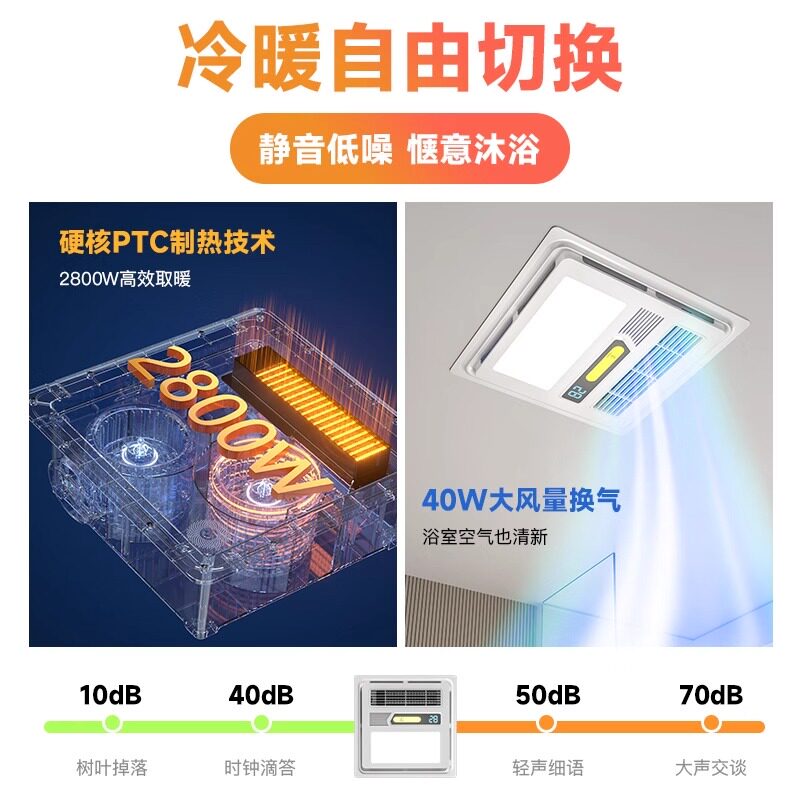 天奥克斯智能恒温浴霸照明排气扇一体卫生间灯集成吊顶浴室取暖器