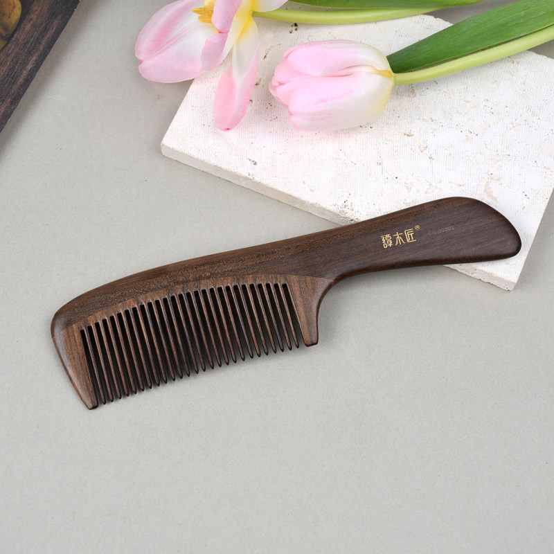 非遗常州梳篦邢粮木艺荷花绵羊角经络木梳子女士养发木匠宽齿头部