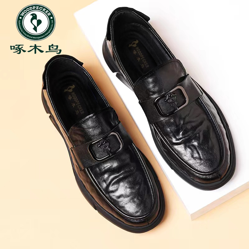 淘宝啄木鸟男鞋新款男士真皮头层羊皮休闲皮鞋英伦圆头豆豆鞋男乐福鞋