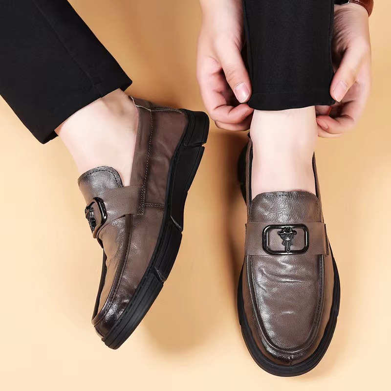 天金利来男鞋商务休闲皮鞋男士豆豆鞋轻便一脚蹬真皮牛皮软底乐福鞋
