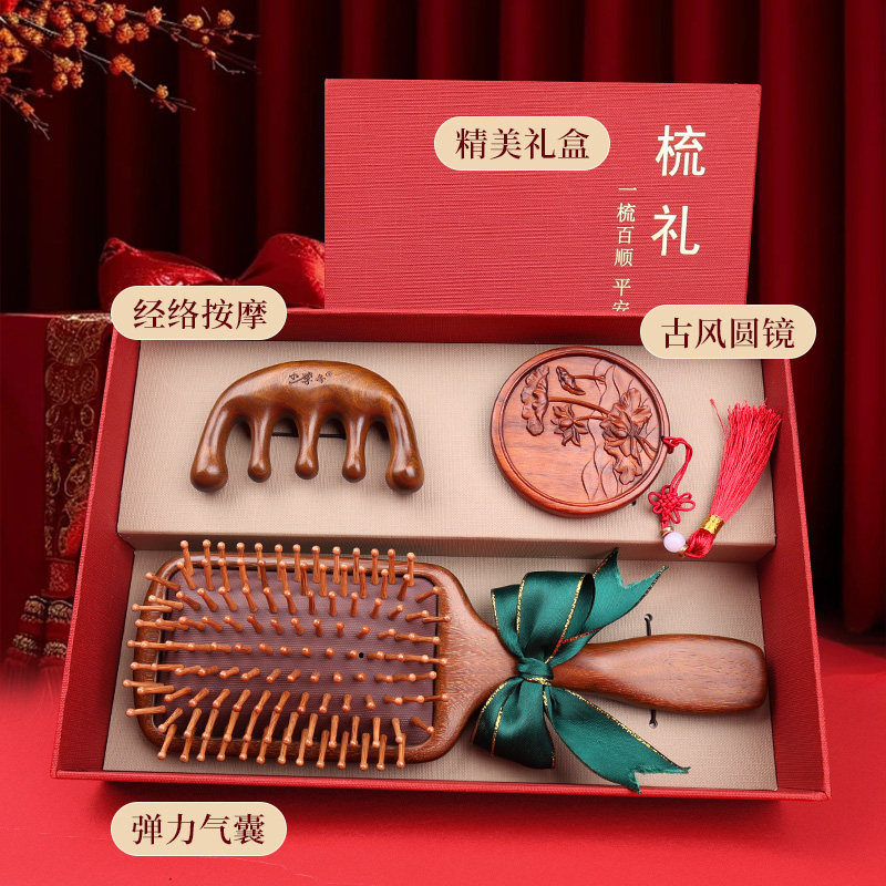 天谭木匠礼盒木梳子汪星人男士女士长发专用蓬松头皮经络按摩可定制