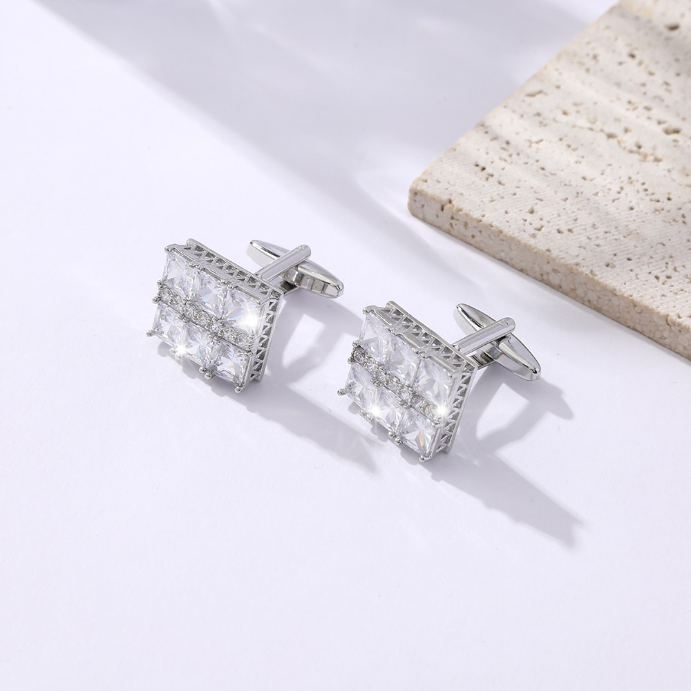 天猫高端法式袖扣男士商务时尚锆石方形袖钉Cufflinks礼盒装