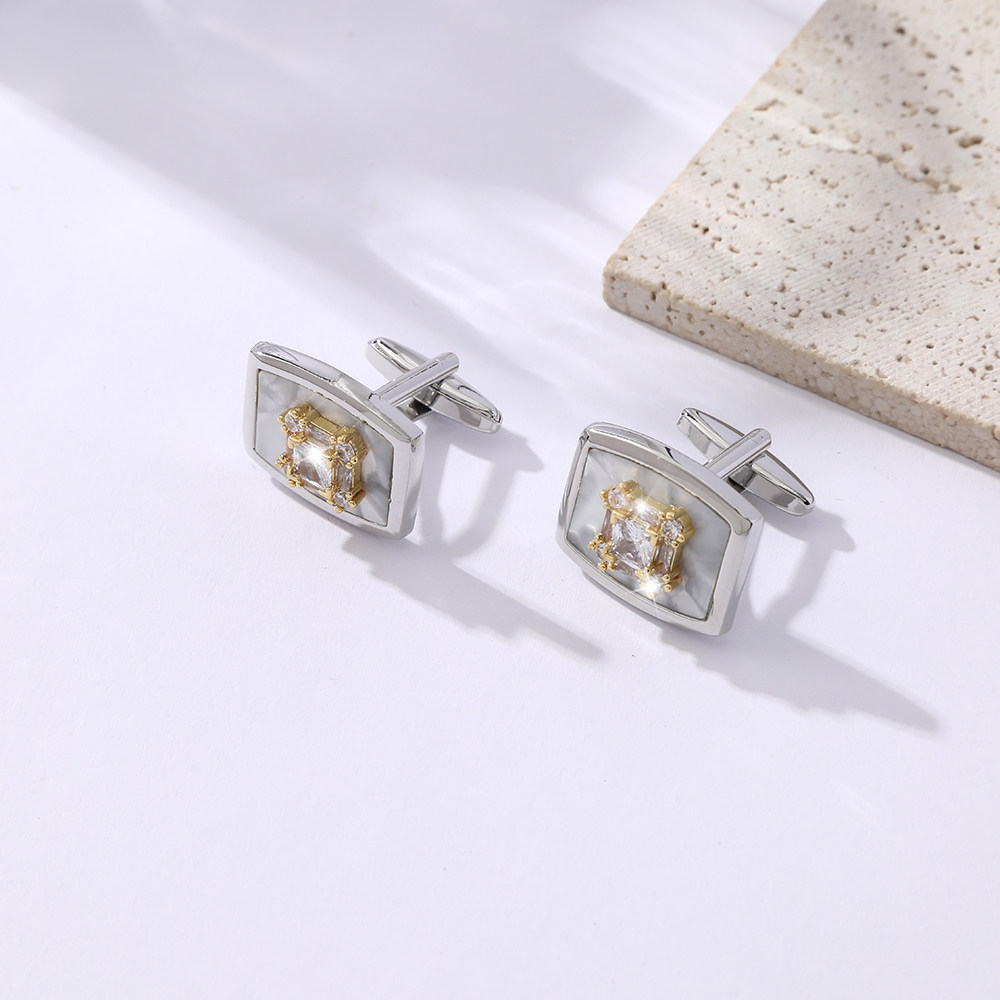 这款高端法式袖扣专为追求精致品味的男士打造,采用优质合金材质,表面经精细抛光处理,质感出众。方形设计简约大气,中央镶嵌璀璨锆石,闪耀夺目却不失内敛,完美契合商务与时尚场合。经典法式双扣结构,佩戴稳固且彰显优雅细节。整体造型兼具现代美学与经典工艺,是商务人士提升气质的绝佳配饰。精美礼盒包装,不仅自用彰显格调,更适合作为馈赠佳品,传递尊贵心意。无论是重要会议、晚宴还是婚礼庆典,这款袖扣都能为您的正装增添一抹低调奢华的亮点,尽显男士不凡魅力。