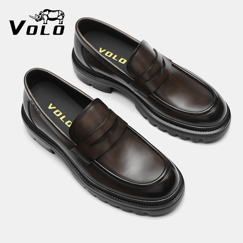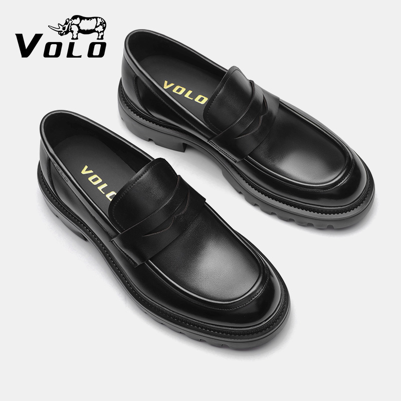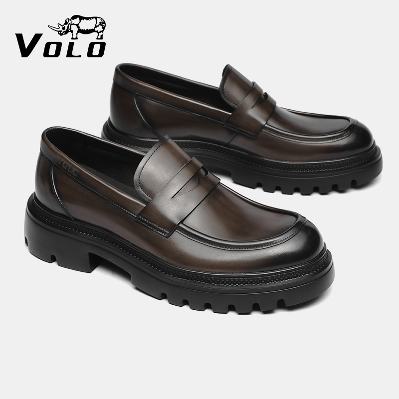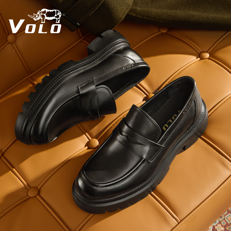 天猫VOLO犀牛乐福鞋男款2025新款秋季男士休闲皮鞋真皮增高一脚蹬男鞋