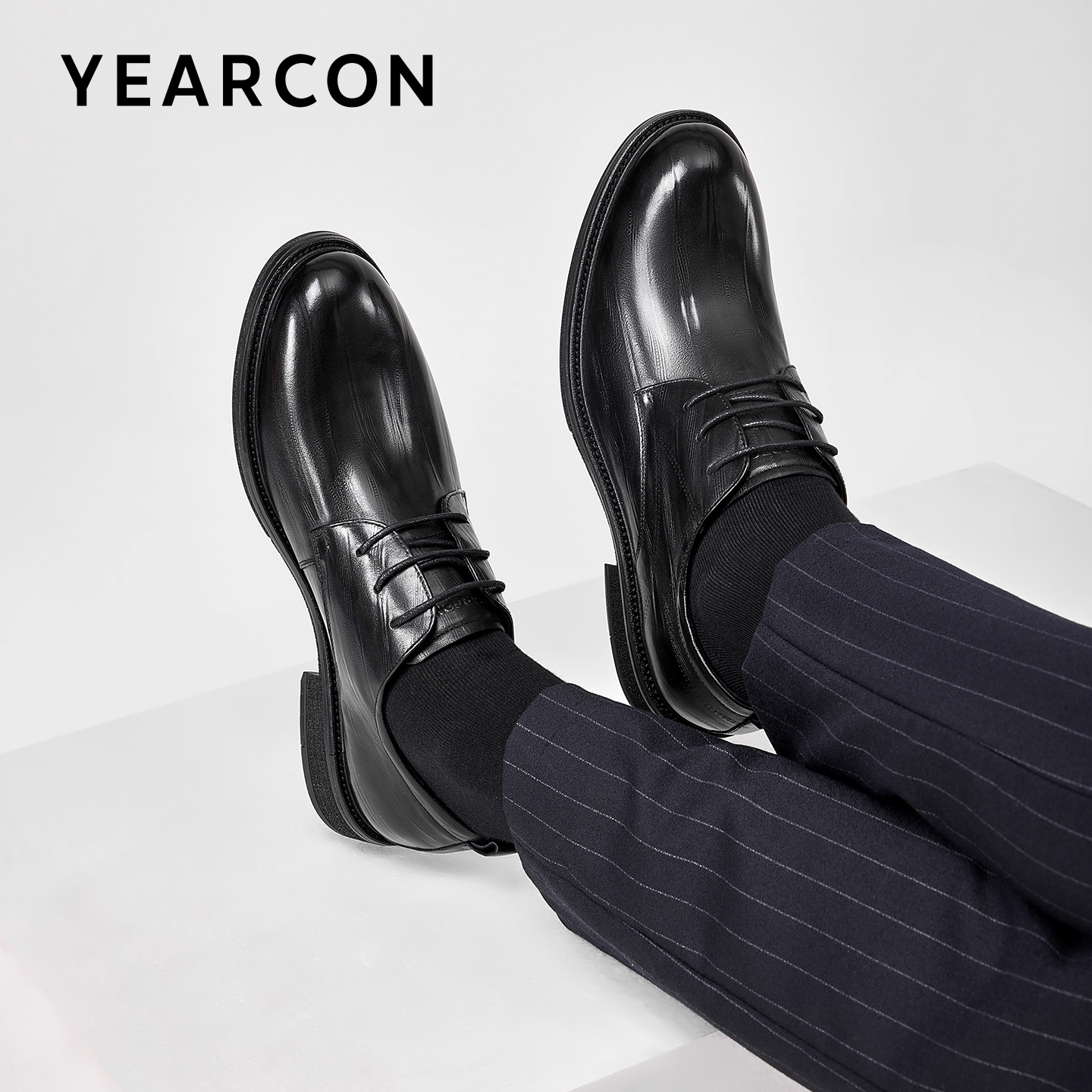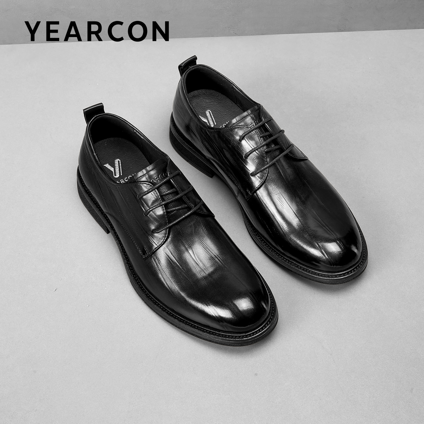 天猫意尔康皮鞋男正装商务秋季新款时尚真皮压纹复古棕色男士皮鞋结婚