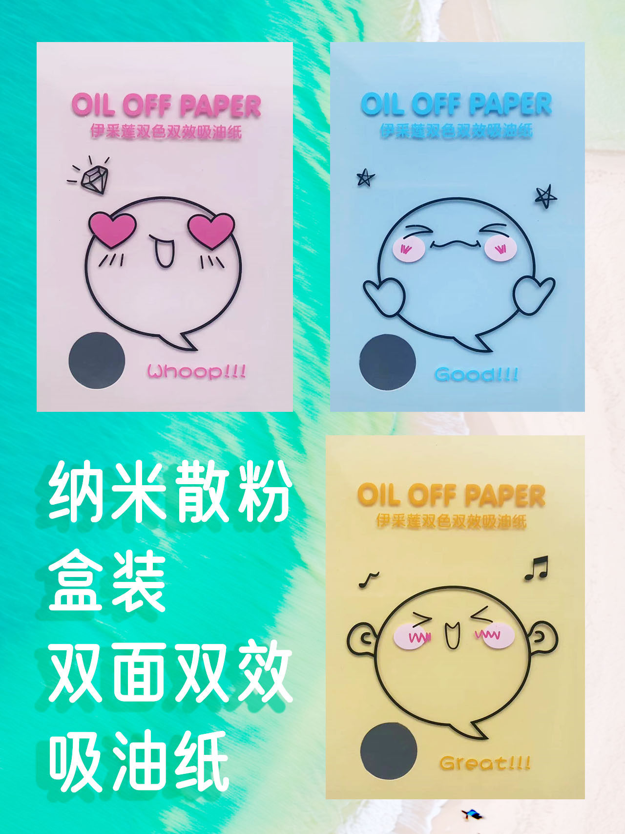 淘宝伊采莲吸油面纸绿茶控油效果持久清爽男女士脸部绒面补妆5盒装送1