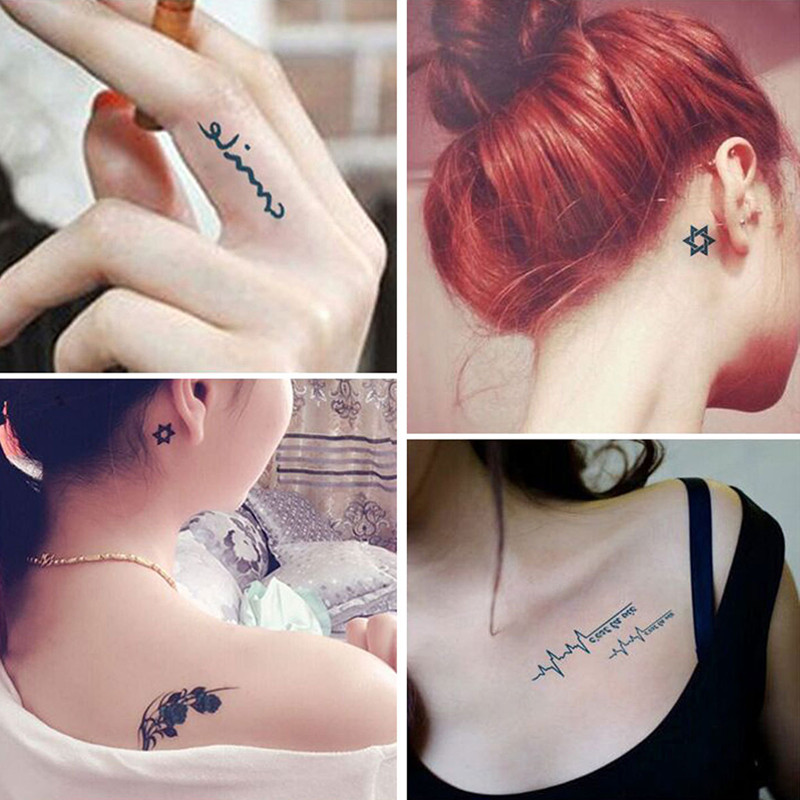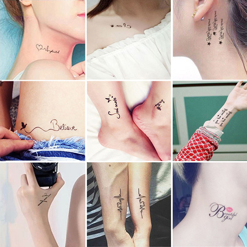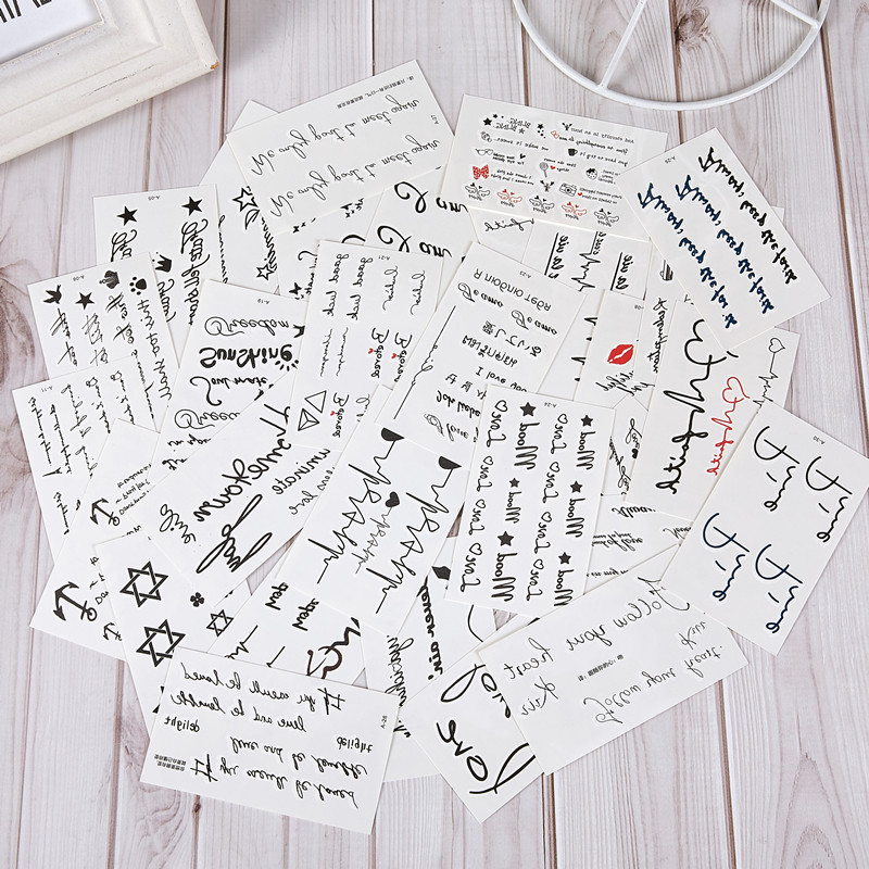 淘宝个性英文字母纹身贴防水男女持久锁骨手臂脚踝情侣黑白ins风贴纸