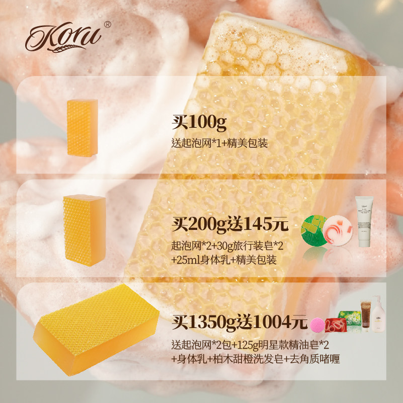 Koru(库露)新西兰麦芦卡蜂蜜精油皂,是一款融合天然麦芦卡蜂蜜与植物精油的手工洁面沐浴皂。源自纯净新西兰,麦芦卡蜂蜜富含独特抗菌成分,能深层清洁肌肤,舒缓敏感,同时锁住水分,滋养干燥肤质。搭配薰衣草、茶树等天然精油,温和不刺激,带来舒缓放松的洗护体验。冷制工艺保留营养成分,泡沫细腻丰富,适用于面部与全身,洗后肌肤柔滑不紧绷。无人工香精、色素及化学添加剂,适合敏感肌与全家使用。Koru手工香皂,以自然之力呵护每一寸肌肤,让洁净与滋养同步实现。