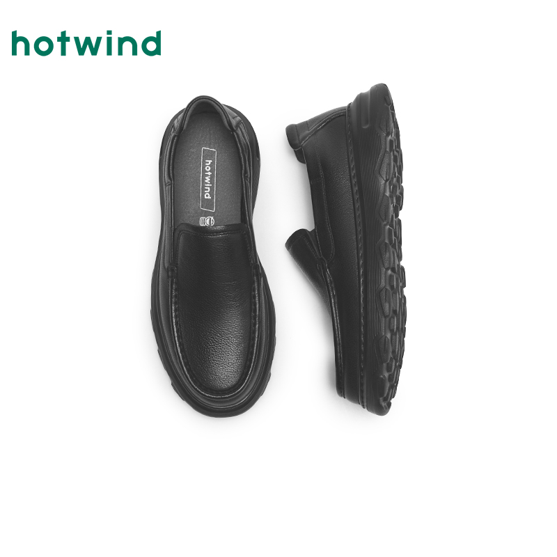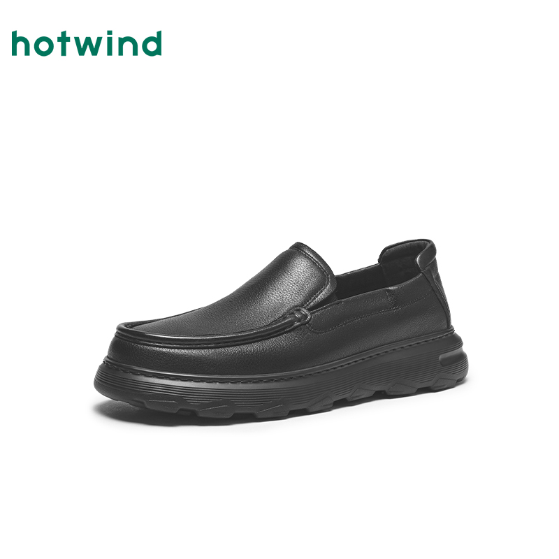 天猫热风男鞋2025年秋季新款男士黑色时尚休闲皮鞋厚底增高百搭乐福鞋