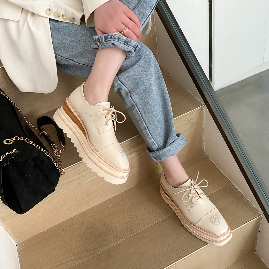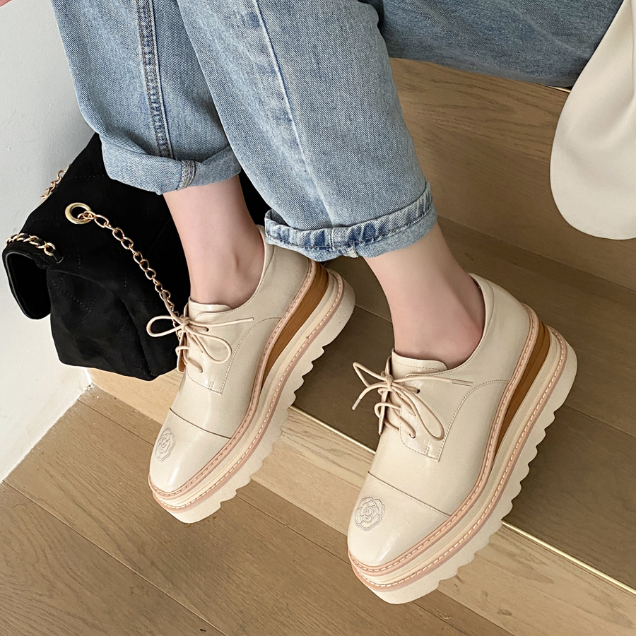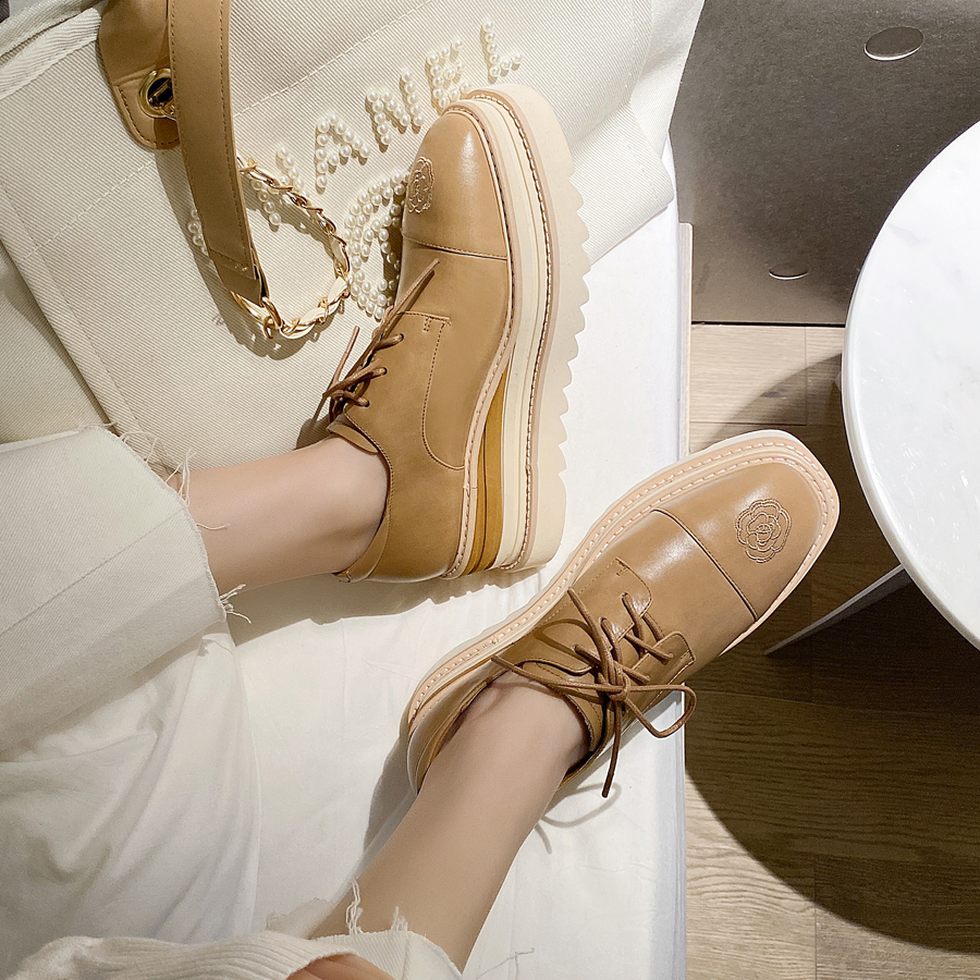 淘宝真皮简约复古前系带绣花单鞋2025春新款英伦风潮流通勤百搭休闲鞋