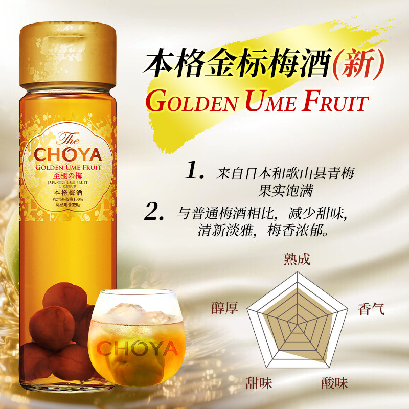 【明星推荐】CHOYA蝶矢本格金标青梅配制酒,精选日本纪州优质青梅,采用传统古法酿造,历经多年熟成,酒体醇厚,梅香浓郁。650mL大容量装,适合聚会分享或日常品鉴。酒液呈琥珀金色,入口酸甜平衡,果味清新,余韵悠长,可纯饮、加冰或调制鸡尾酒,风味多变。作为日本进口高端果酒,蝶矢本格金标不仅荣获多项国际大奖,更深受明星与美食达人青睐。无论是佐餐、送礼还是犒赏自己,都是品质之选。体验地道日式梅酒文化,从一杯CHOYA开始,感受自然与匠心的完美融合。