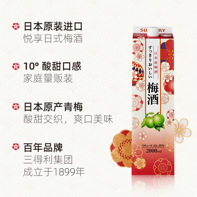 天猫【官方正品】宾三得利原装进口Suntory青梅酒10度低度果酒2L盒装