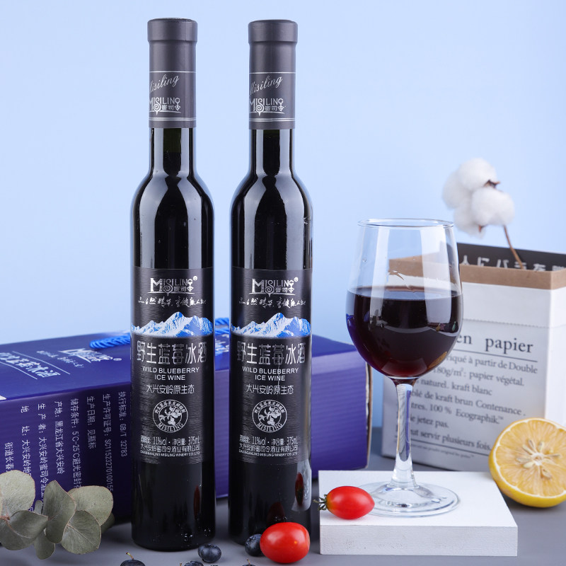 淘宝蜜司令大兴安岭野生蓝莓冰酒11度蓝莓果酒地方特产375ml*2瓶礼盒