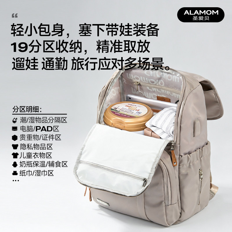 天猫Alamom妈咪包时尚防水轻便多功能外出双肩大容量新款母婴包
