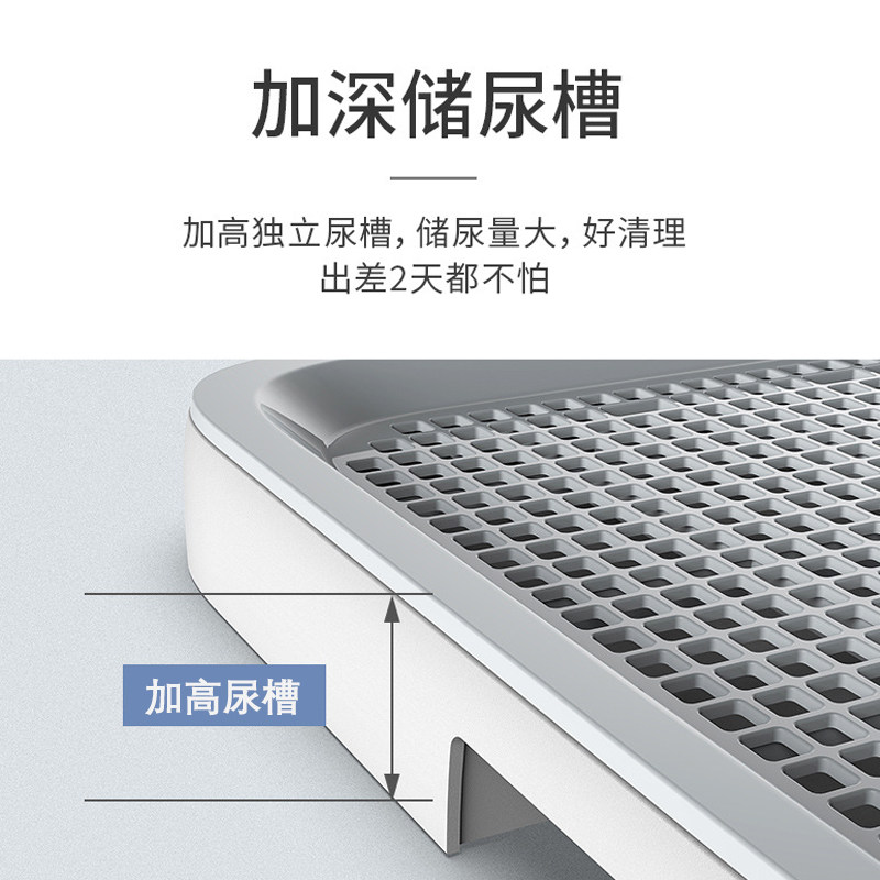 这款专为中小型犬及大型公狗设计的大型平板式宠物尿盘,采用加厚防滑材质,结实耐用,不易被狗狗抓破或打翻。特大号尺寸提供充足活动空间,边缘加高防溅设计,有效减少尿液外溢,保持地面清洁。配备可拆卸挡尿墙,特别适合抬腿排尿的公狗,阻挡飞溅更彻底。底部设有导流槽和防滑脚垫,便于清洁且稳固安全。开放式结构方便狗狗进出,适合室内外使用。整体设计简洁实用,搭配尿垫或宠物尿砂使用效果更佳,是家庭养犬的理想选择,让如厕更卫生、打理更轻松。