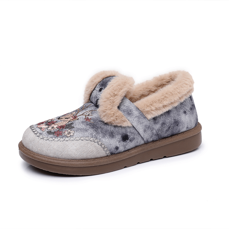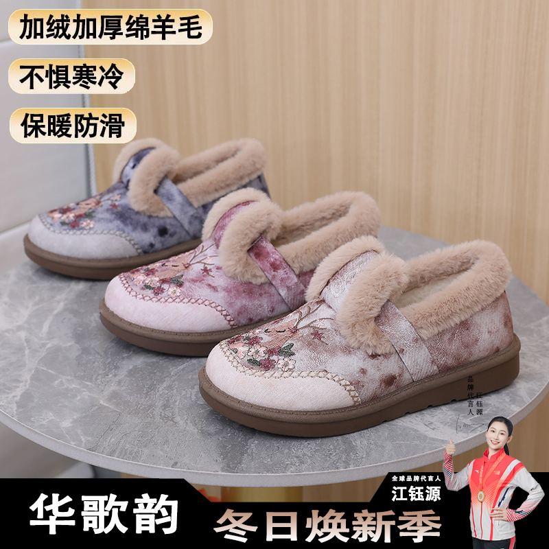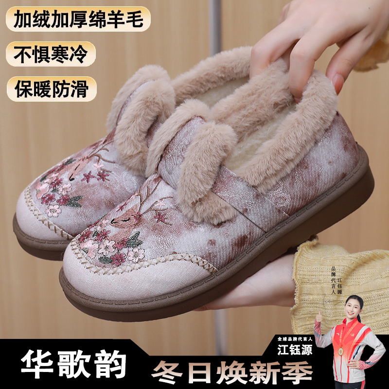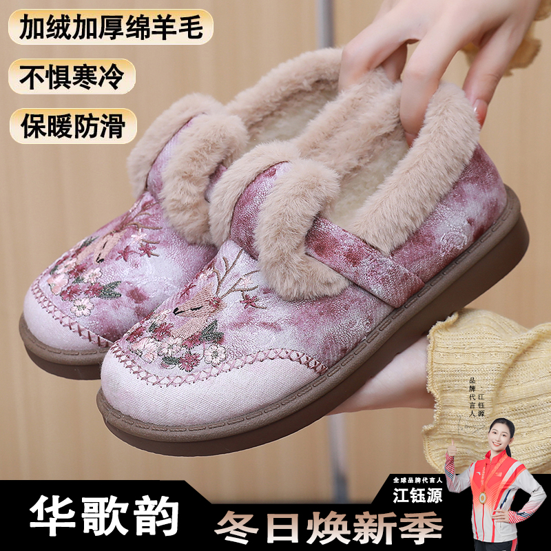 淘宝冬季新款老北京棉鞋女加绒加厚妈妈鞋绵羊毛保暖绣花鞋一脚蹬棉鞋