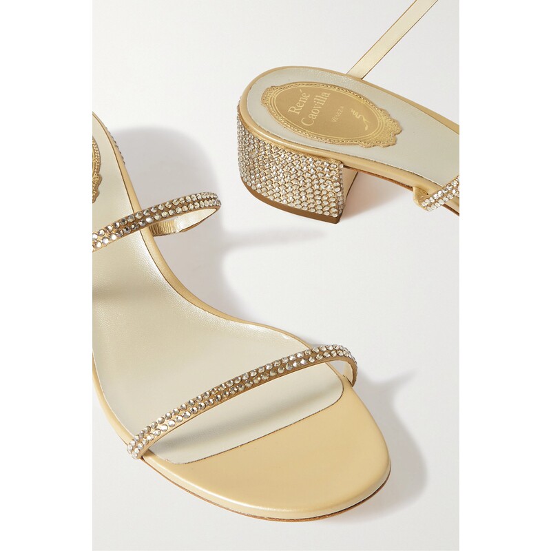 天猫Rene Caovilla春夏女水晶缀饰缎面凉鞋