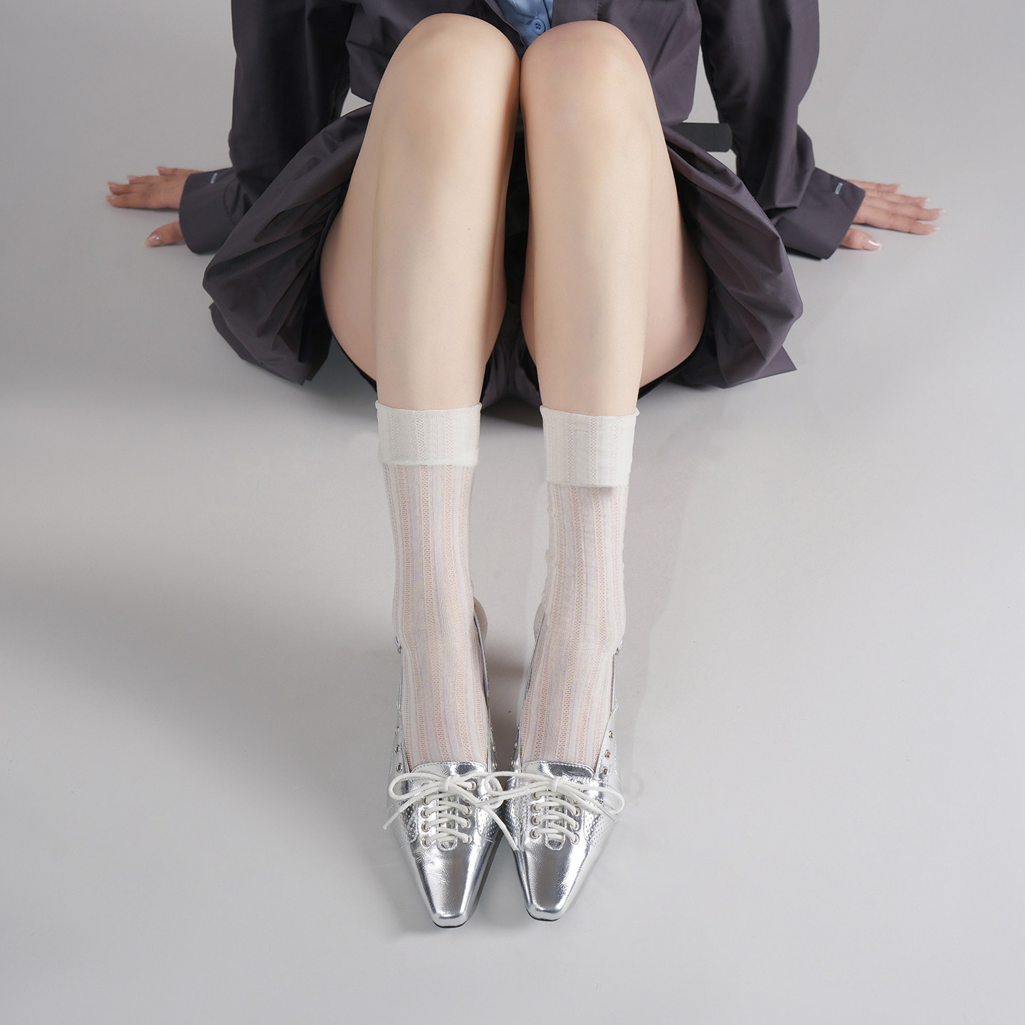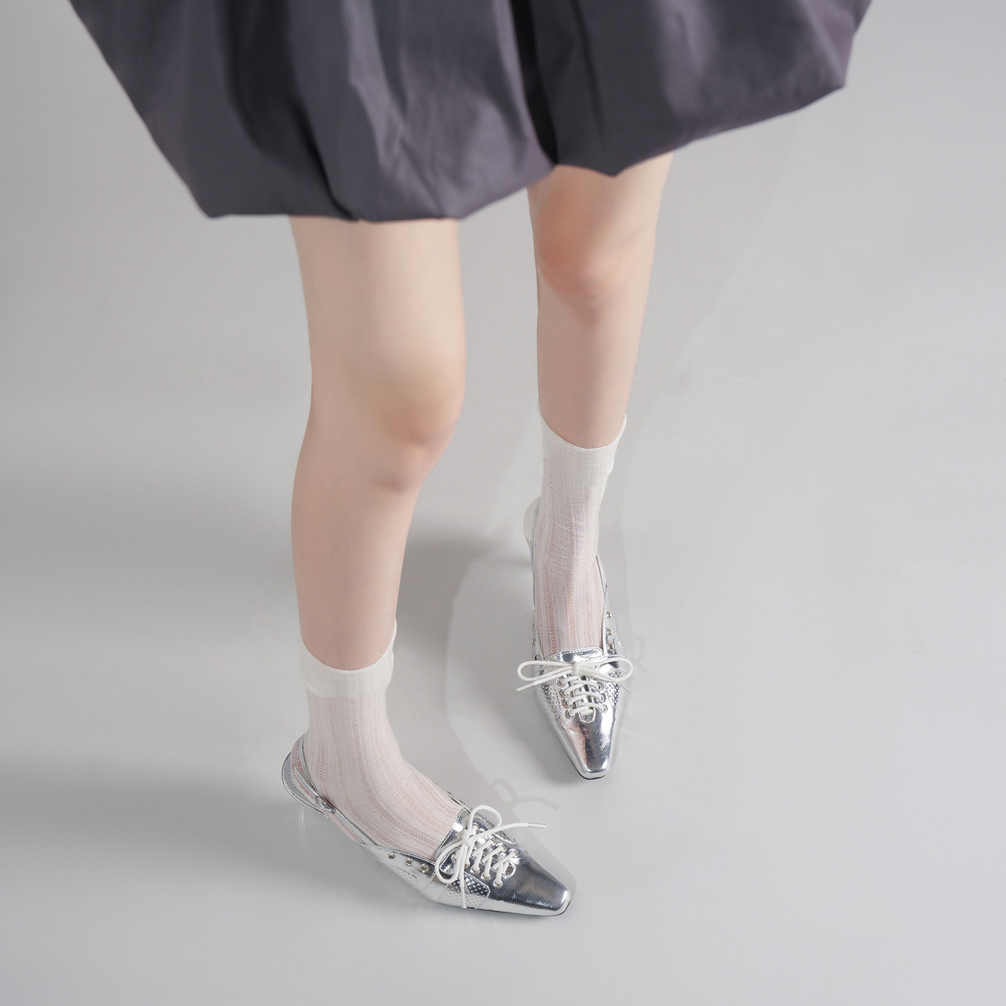 林向晚千禧Y2K系列尖头银色高跟鞋,以未来感十足的金属银为主调,融合千禧年复古美学与当代小众设计,打造极具辨识度的辣妹风格。尖头设计拉长腿部线条,细高跟提升气场,鞋面采用多道交叉绑带装饰,兼具性感与个性,包头款式兼顾舒适与时尚。整体造型前卫吸睛,适合派对、街拍或日常出街,轻松驾驭Y2K潮流氛围。无论是搭配短裙、牛仔还是机能风穿搭,都能瞬间点亮整体造型,展现自信不羁的年轻态度。小众而不张扬,是追求独特风格的时尚女孩不可或缺的鞋履之选。