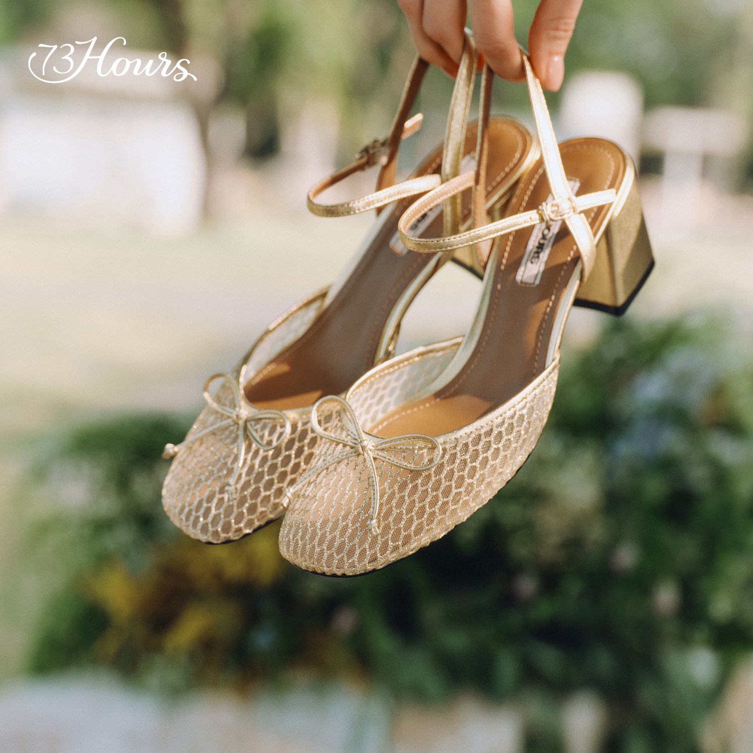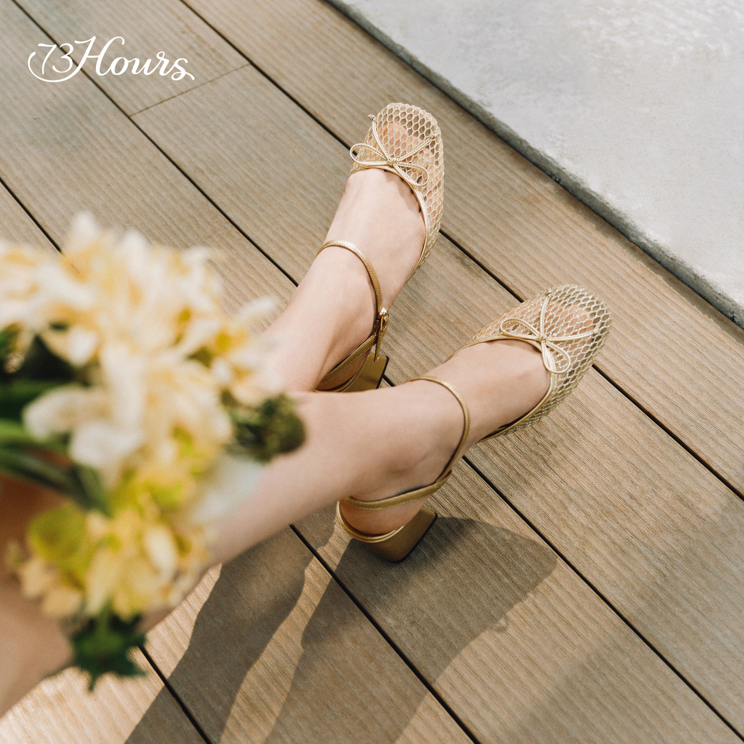 73hours女鞋一捧浪漫2026春季新款仙气网纱高跟鞋婚鞋女后空凉鞋
