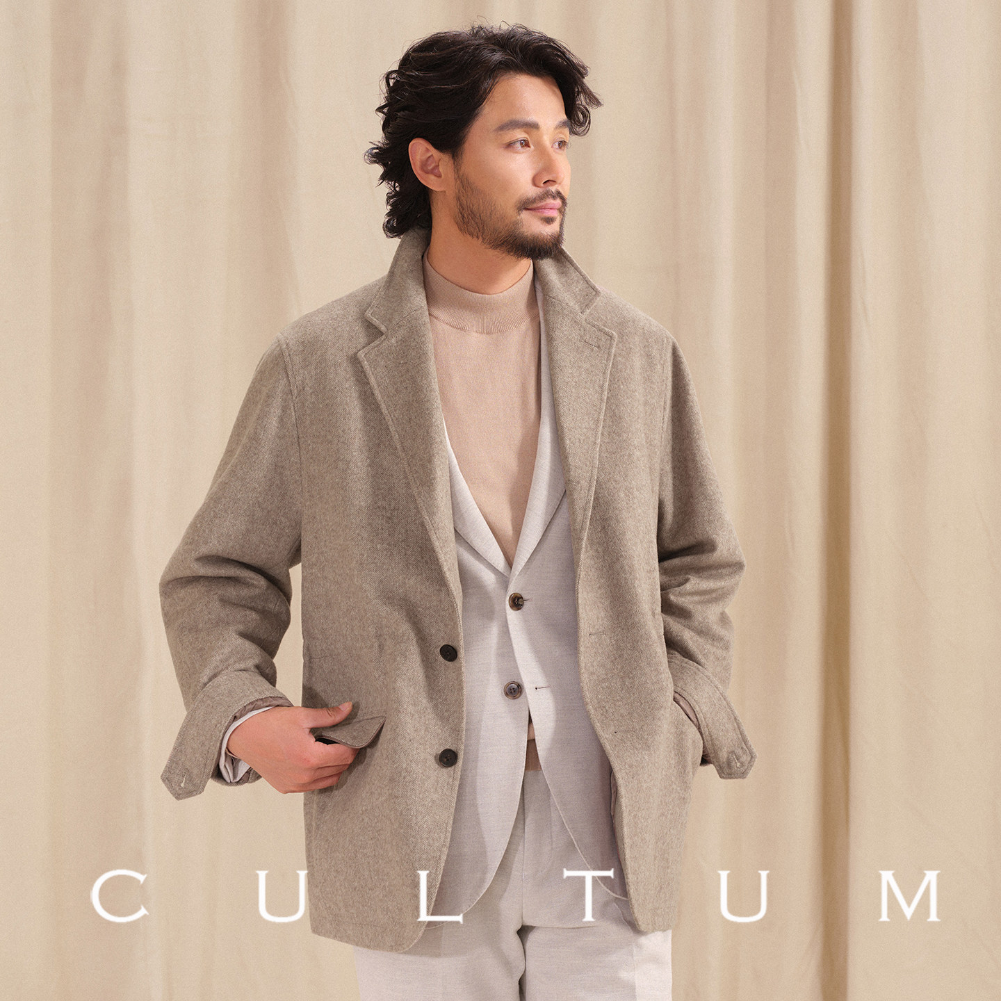 淘宝【高克重保暖50羊毛】CULTUM意式复古人字纹西装领夹克男休闲外套