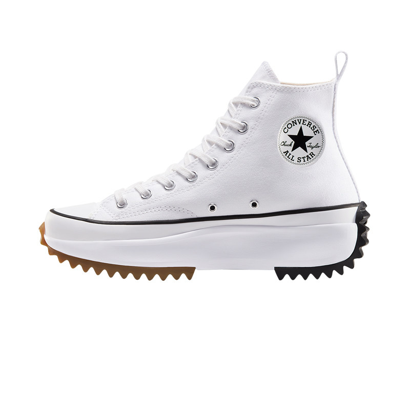 Converse Run Star Hike(货号:166799C/166800)是匡威推出的厚底高帮帆布鞋,融合经典设计与现代潮流元素。鞋身采用标志性帆布材质,搭配加厚锯齿状外底,不仅提升整体视觉高度,更增强缓震与抓地力。高帮版型提供良好脚踝支撑,适合日常休闲穿搭。男女同款设计,风格百搭,可轻松驾驭街头、校园或都市出行场景。经典星箭Logo点缀鞋侧,彰显品牌辨识度。Run Star Hike在保留Converse复古韵味的同时,注入前卫厚底美学,成为近年来备受追捧的潮流单品,兼顾舒适性与时尚感,是追求个性与舒适并重的理想之选。