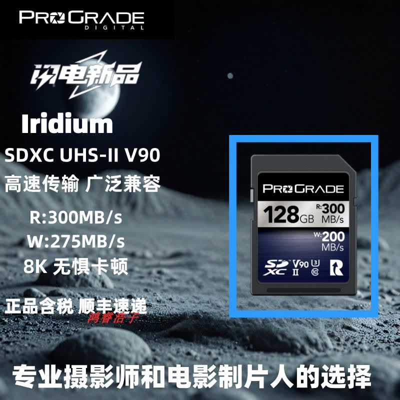 ProGrade铂格瑞SDXC卡是一款面向专业摄影师与摄像师的高性能存储卡,读取速度高达300MB/s,写入速度稳定可靠,支持V90视频速度等级,可流畅录制8K RAW及高码率4K/60fps视频。采用UHS-II接口,具备出色的数据传输效率,满足高端相机、无人机及电影级设备的高速连拍与持续录制需求。卡体坚固耐用,具备防震、防X光、耐高低温等特性,适应严苛拍摄环境。提供64GB至512GB多种容量选择,并享有终身有限质保,是专业影像创作的可靠存储解决方案,助力用户捕捉每一刻精彩瞬间。