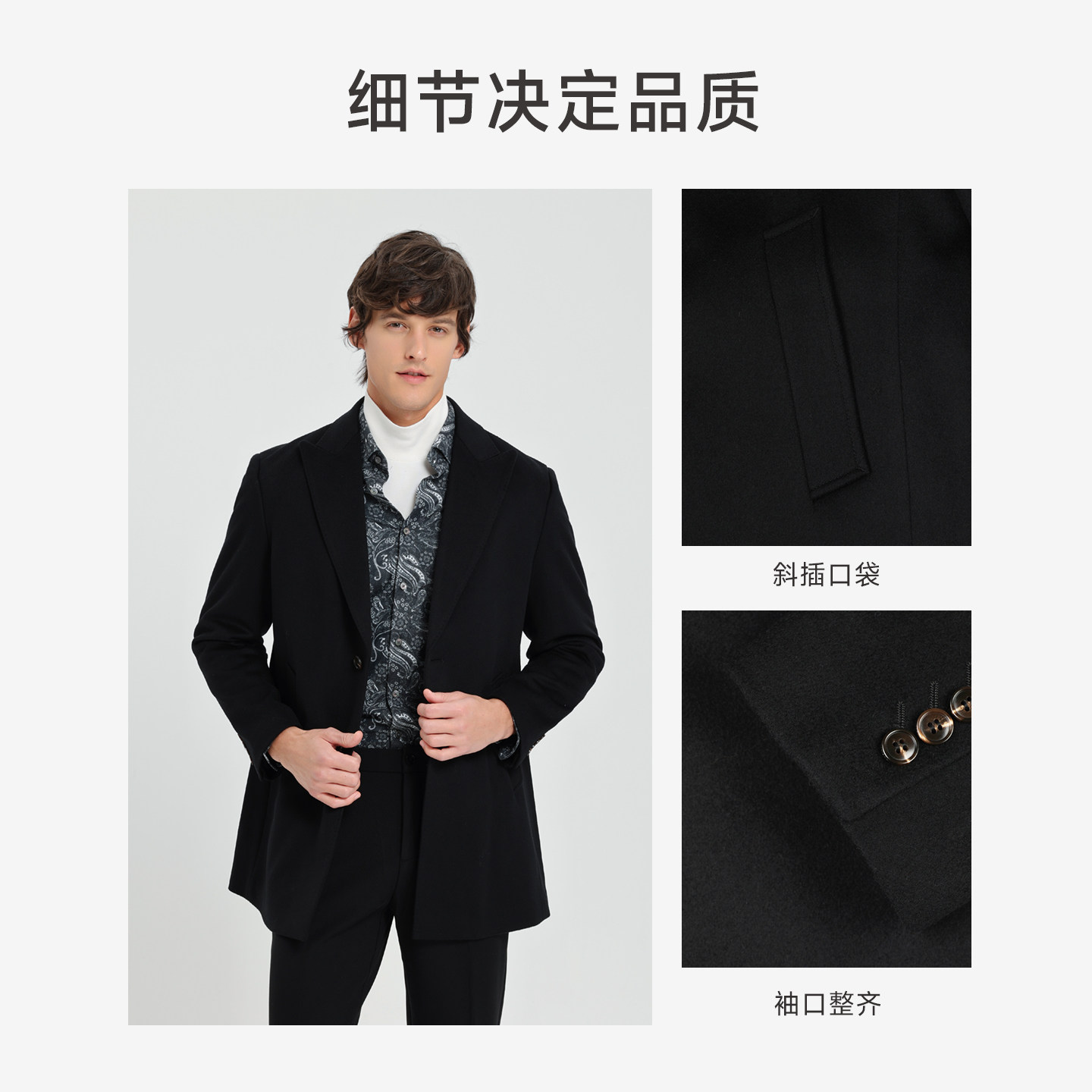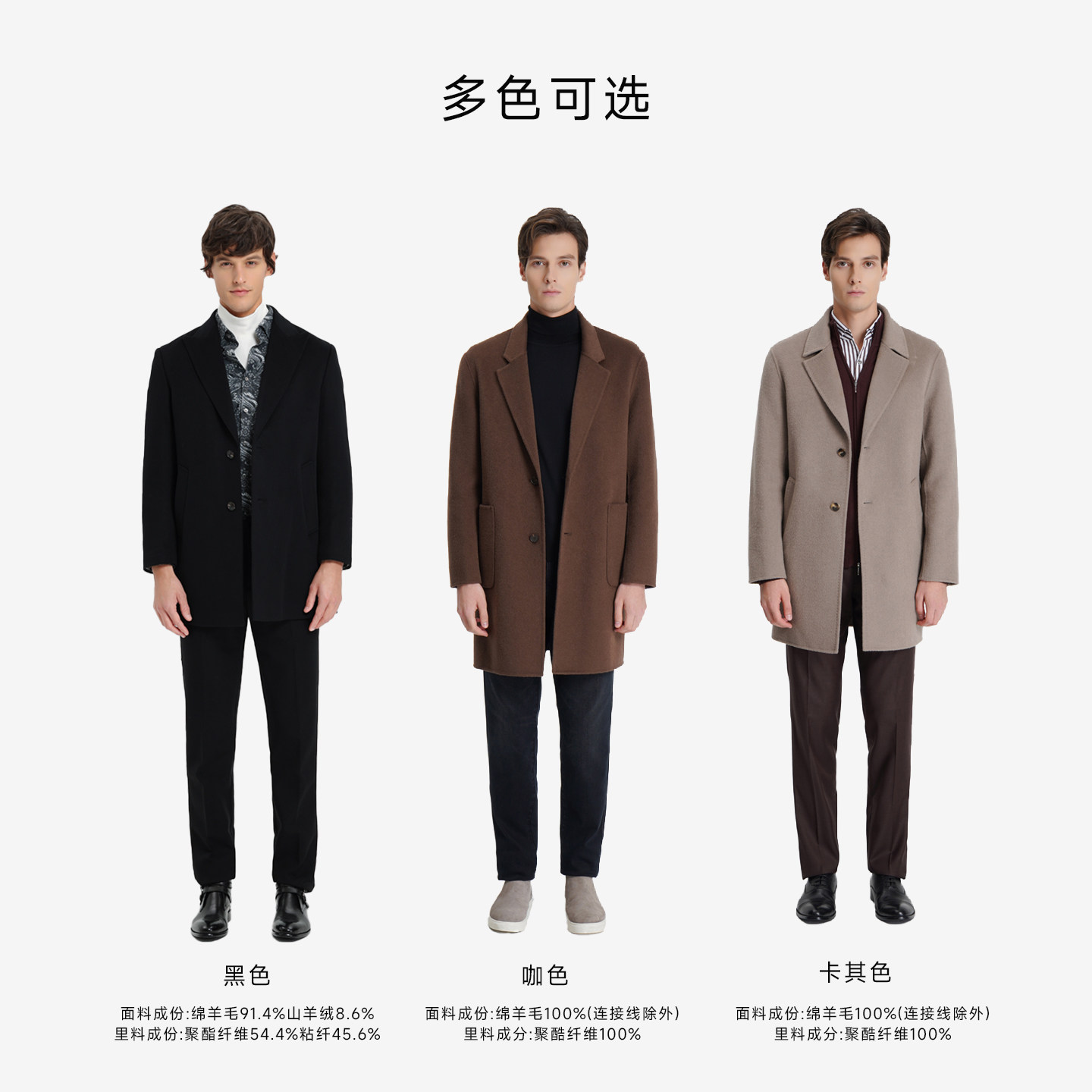 CALLISTO冬季新款男士中款戗驳领羊毛保暖毛呢大衣,精选优质山羊绒与羊毛混纺面料,兼具柔软触感与卓越保暖性能,轻盈挺括,穿着舒适自在。经典戗驳领设计,彰显绅士格调,中款剪裁利落修身,完美修饰身形,适合商务通勤与日常出行。内里细腻包边工艺,细节考究,提升整体质感。多道精细工序打造,抗皱耐磨,持久保持版型挺括。深灰、藏青、炭黑三色可选,百搭易穿,轻松应对寒冬。无论是搭配西装还是休闲裤装,皆能展现男士沉稳优雅气质,是冬季衣橱不可或缺的时尚单品。