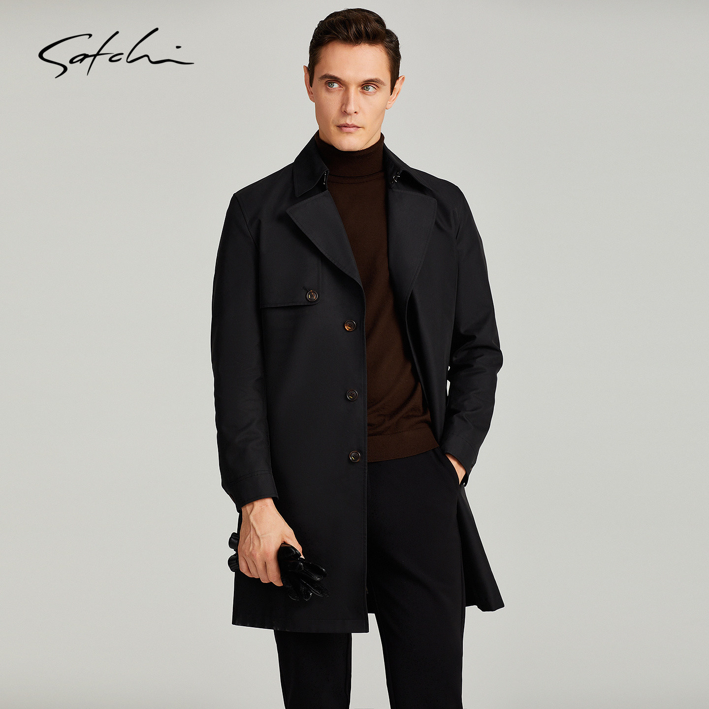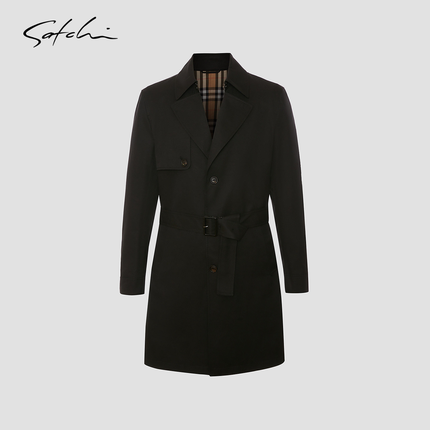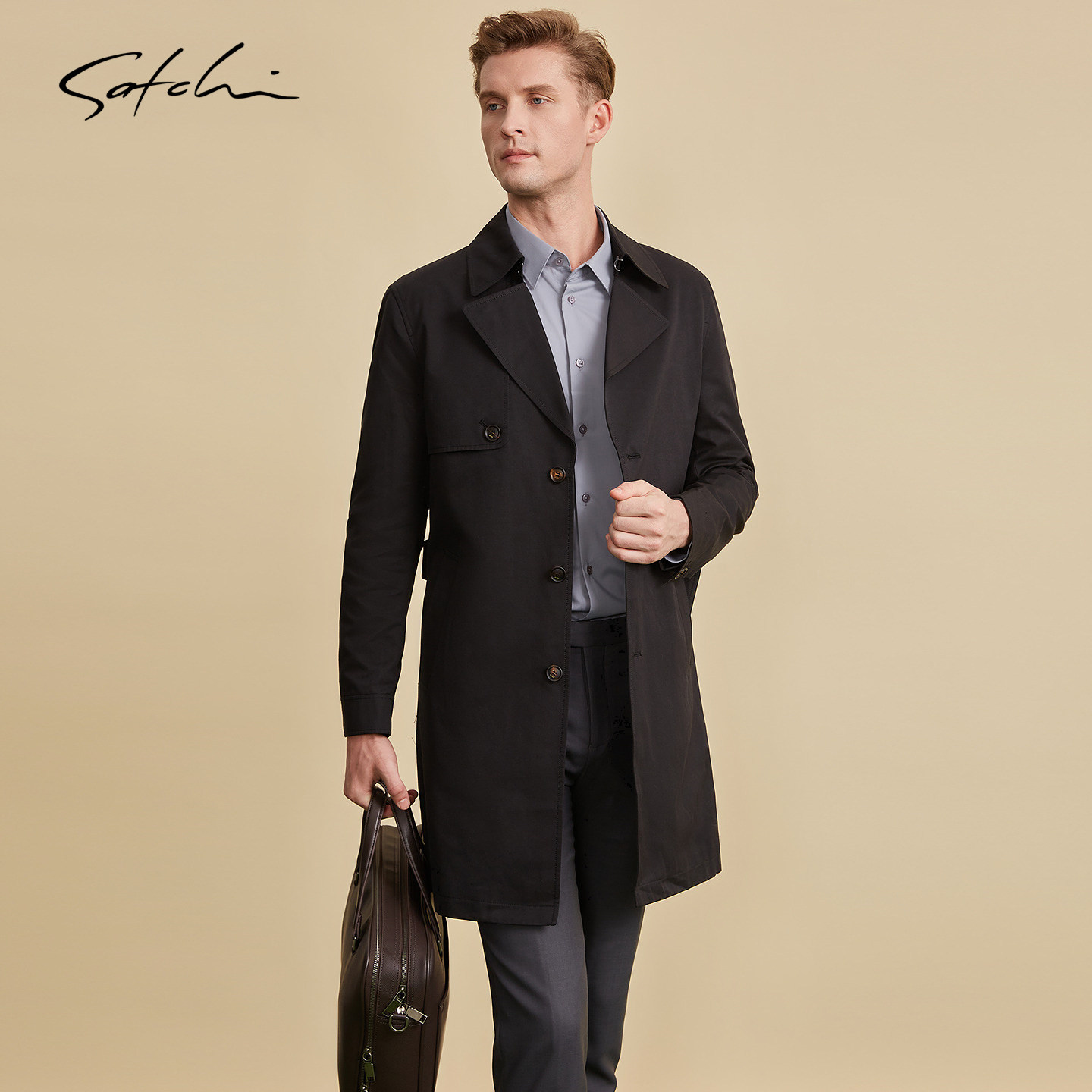 天猫SATCHI沙驰男装男士战壕风衣春秋中长款英伦风切尔西军大衣外套