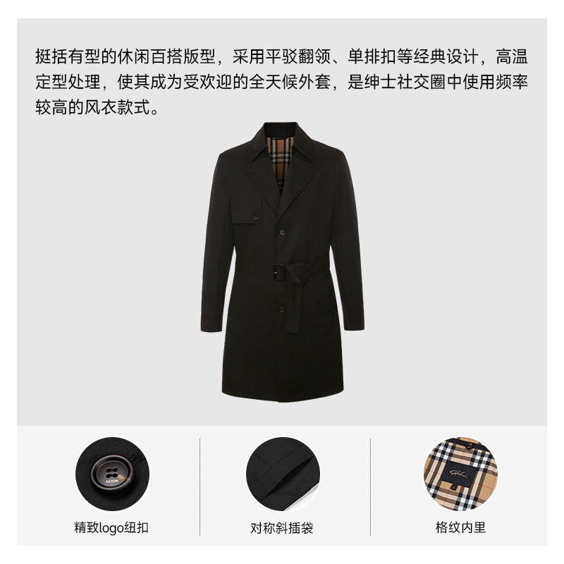 SATCHI沙驰男装男士战壕风衣,融合经典英伦风格与现代剪裁,专为追求品质与格调的男士打造。采用优质防风面料,中长款设计兼顾保暖与优雅,适合春秋季节穿着。灵感源自传统军大衣,融入切尔西简约线条,双排扣、肩章、腰带等细节彰显硬朗气质。立体剪裁贴合身形,活动自如不失挺括感。无论是商务通勤还是休闲出行,都能轻松驾驭,展现都市型男的沉稳与风度。SATCHI沙驰以精湛工艺诠释经典,让每一件风衣都成为衣橱中的永恒单品。