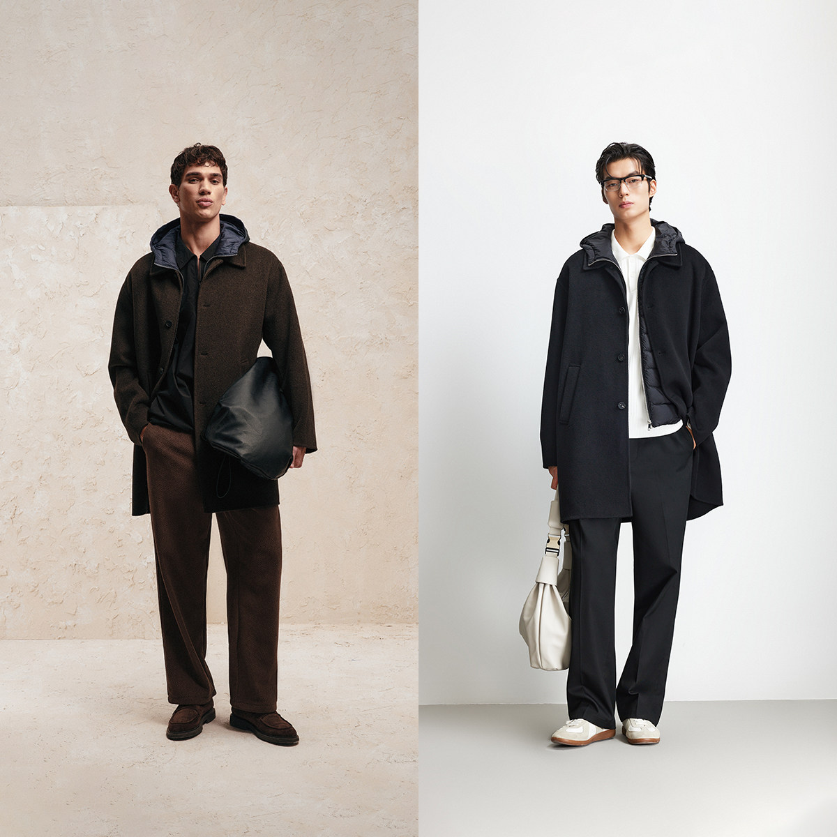 VJ区绫致杰克琼斯男士秋季毛呢大衣,融合经典与时尚,采用优质羊毛混纺面料,保暖挺括。长款版型设计,搭配可拆卸马甲,一衣多穿,轻松应对多变天气。连帽设计增添休闲感,兼顾防风实用性与造型层次。马甲内衬细腻,外穿内搭皆宜,轻松打造商务通勤或日常休闲的百搭风格。精致剪裁凸显男性挺拔身姿,细节处彰显品牌质感。无论是搭配毛衣、衬衫还是卫衣,都能展现都市型男的儒雅与干练。这款大衣集功能性与时尚感于一体,是秋季衣橱的理想之选。