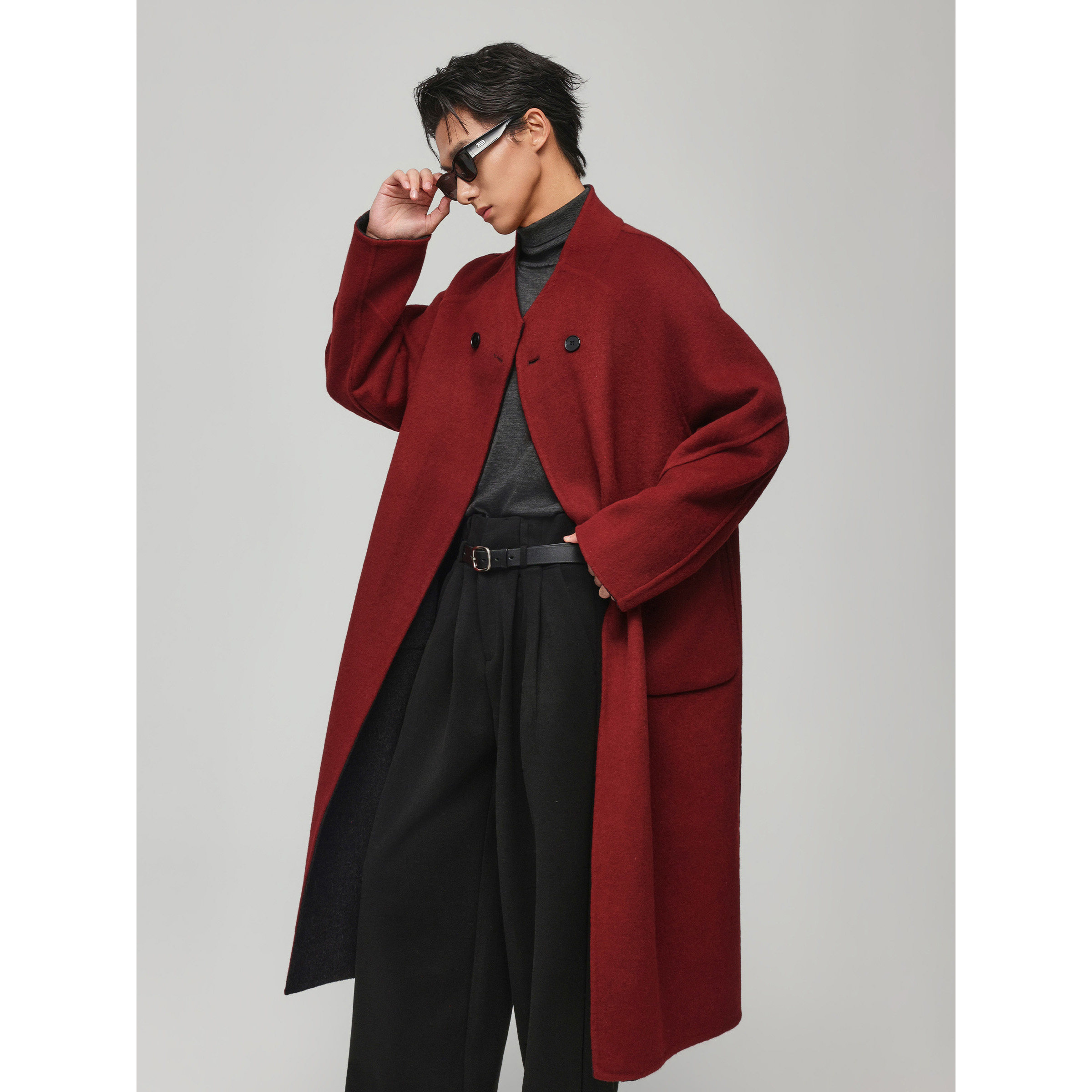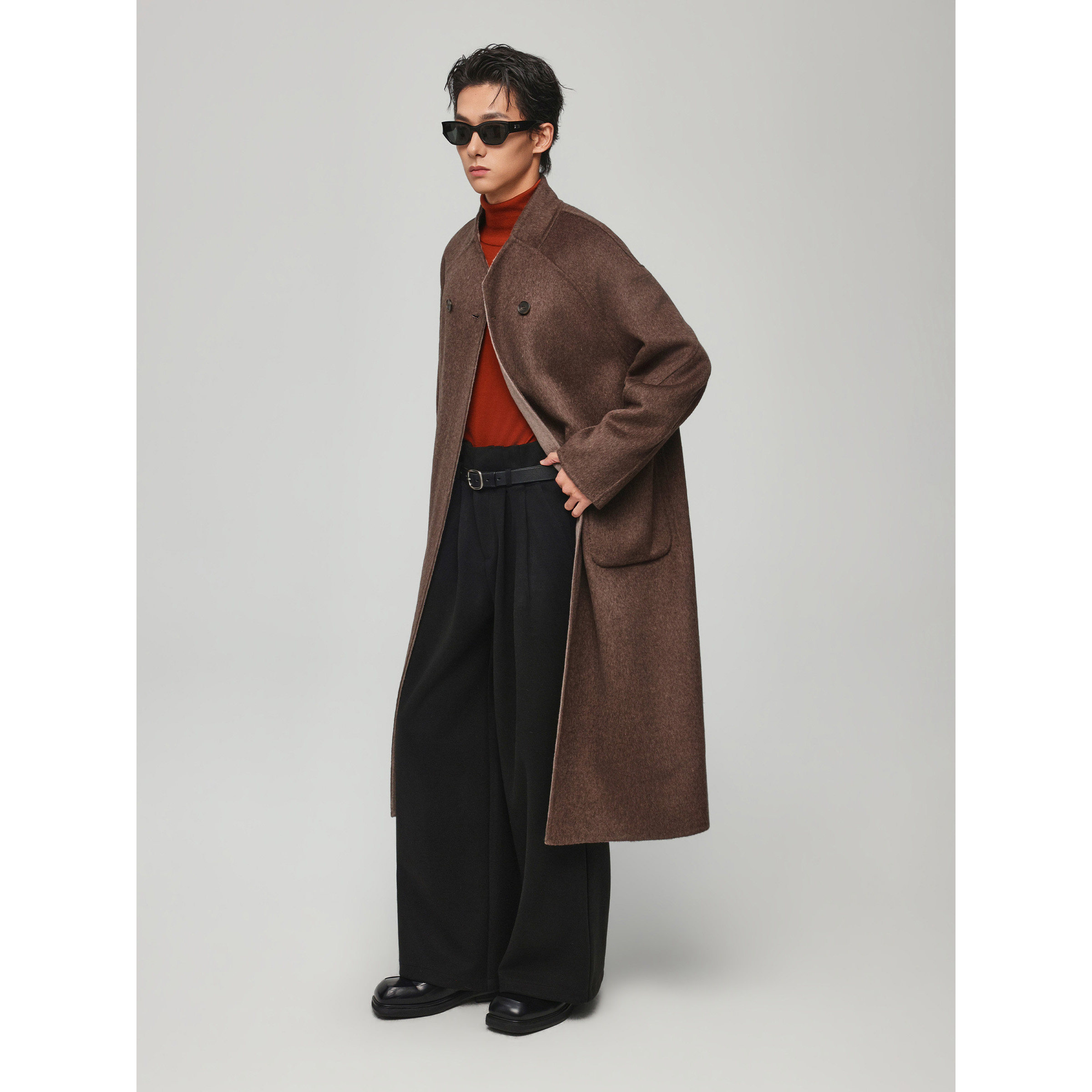 【双面100%羊毛】CULTUM双排扣戗驳领宽松长款羊毛大衣男毛呢外套