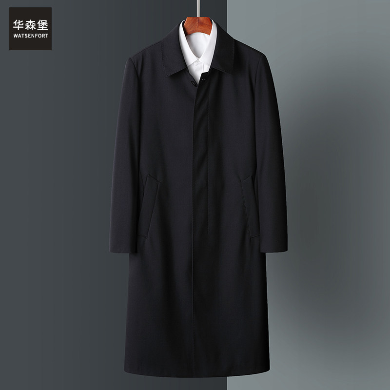 天猫中老年人长款风衣男过膝春秋宽松翻领休闲上衣爸爸装秋装男装大衣