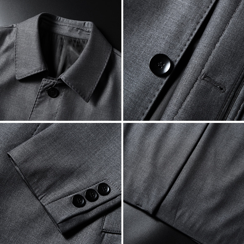 天w2x春秋季高密加捻细斜纹风衣男中长款外套高级感宽松猎装大衣潮