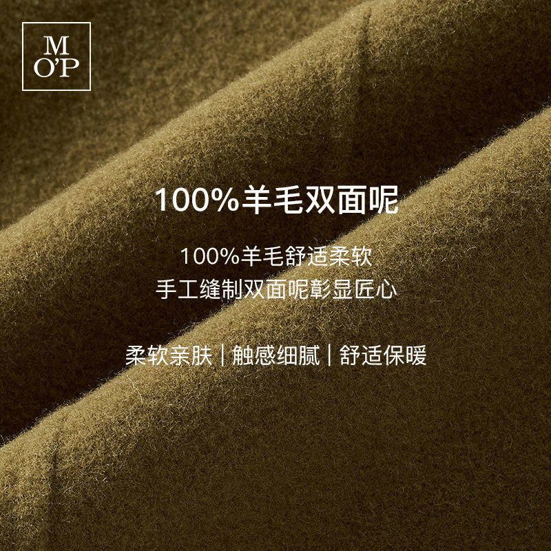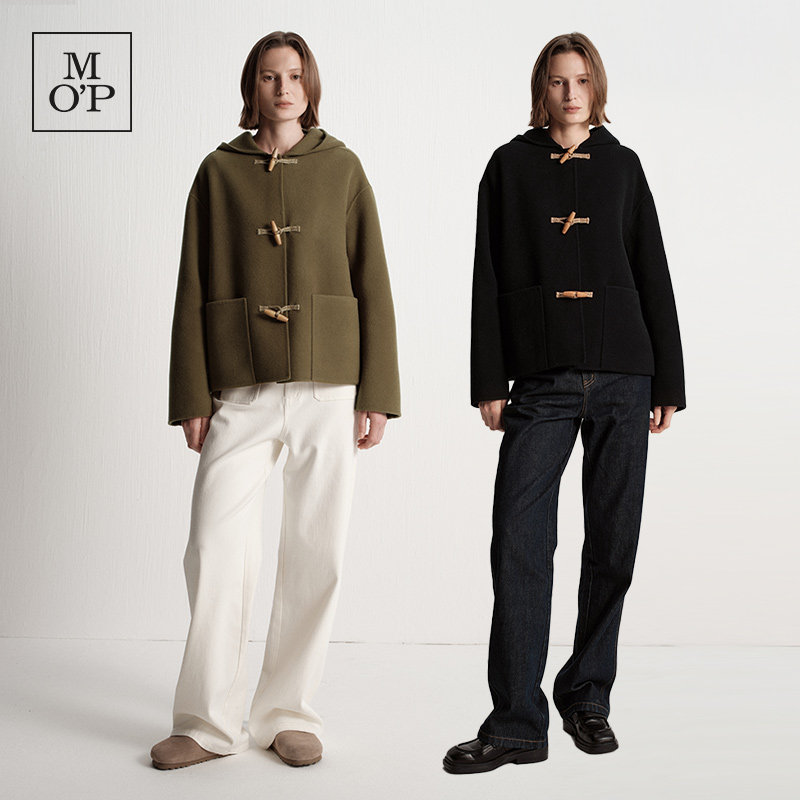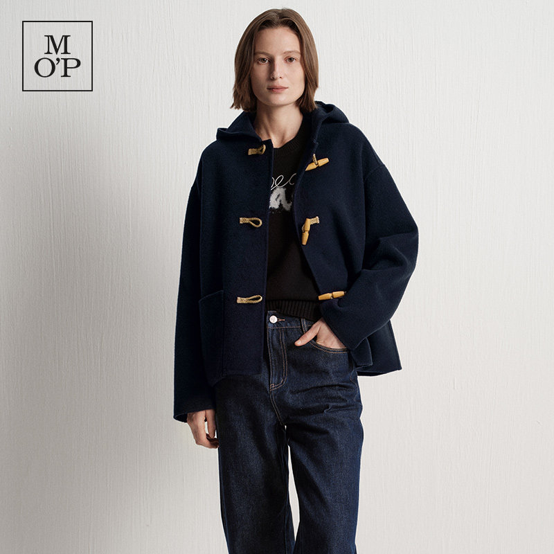 天猫Marc O'Polo/MOP冬季新款气质100%羊毛牛角扣连帽短大衣外套女士
