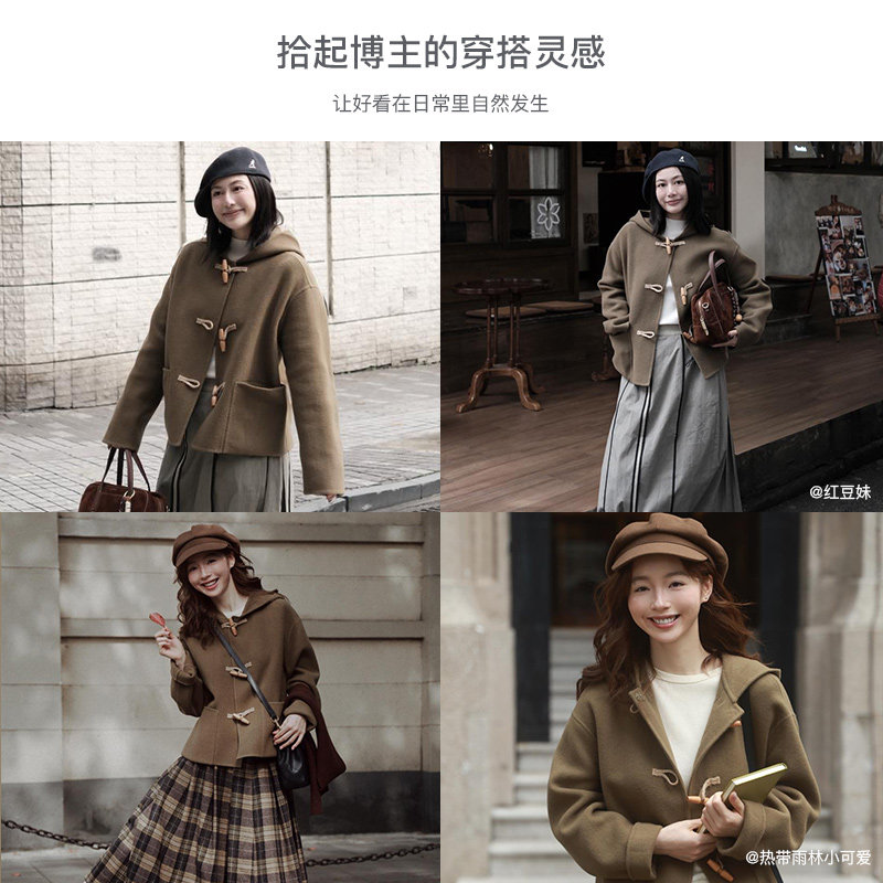 MarcOPolo(MOP)冬季新款女士100%羊毛牛角扣连帽短大衣,融合经典英伦风格与现代简约设计。精选优质纯羊毛面料,触感柔软、保暖性佳,穿着舒适且富有垂坠感。经典牛角扣门襟搭配复古连帽设计,既实用又彰显优雅气质。短款剪裁利落修身,轻松拉长身形比例,适合多种穿搭风格。无论是搭配针织衫与长裤,还是裙装,皆能展现知性温婉的女性魅力。细节处做工精致,走线工整,彰显品牌匠心品质。这款大衣是冬日里兼具温度与风度的理想选择,为都市女性打造温暖而时尚的冬日造型。