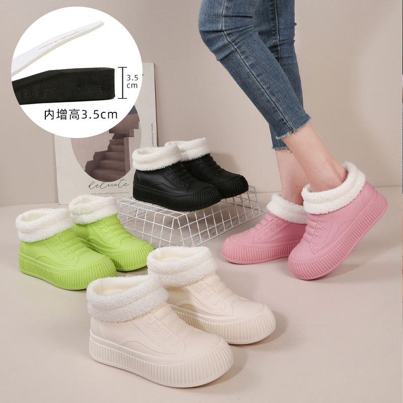 淘宝日系雨靴女款加绒内增高水鞋成人时尚厚底胶鞋防滑防水软底棉雨鞋