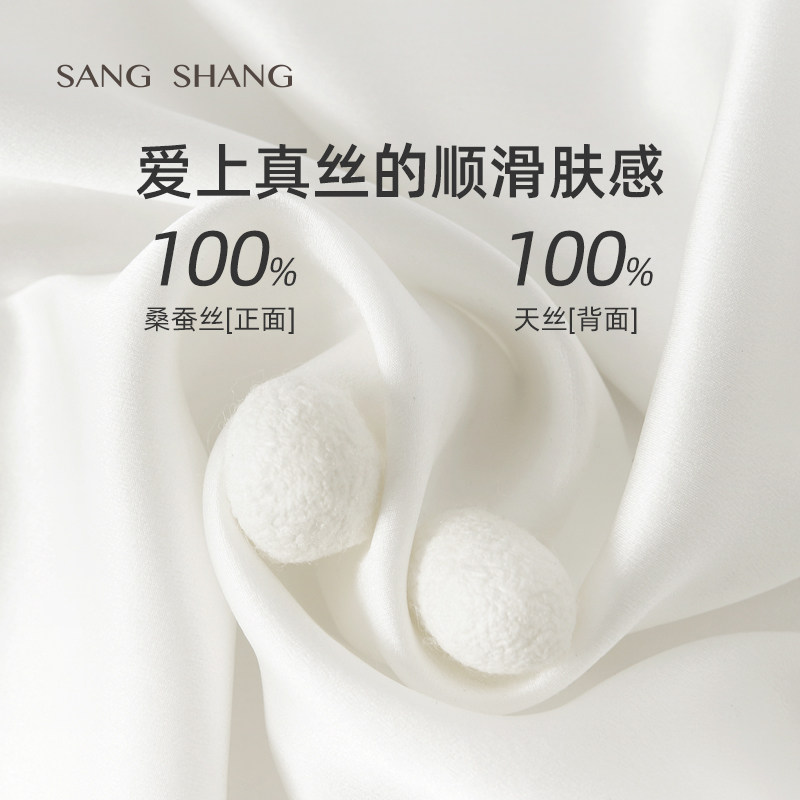 天猫桑尚真丝双人枕套长款100%桑蚕丝纯色男女士高档单个装丝绸枕头套