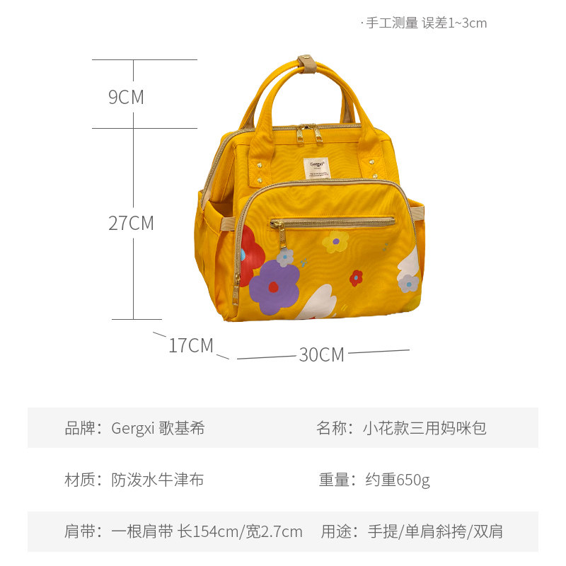 这款6色升级版原创小花妈咪包,专为时尚潮妈量身打造,集实用与颜值于一身。采用高品质防水面料,轻松应对日常泼溅与雨天出行,清洁更省心。三用设计灵活切换——手提、单肩、斜挎随心搭配,满足不同场景需求。包身融入原创小花图案,清新减龄,彰显个性品味。内部科学分区,大容量主袋搭配多个收纳隔层,轻松容纳宝宝用品与妈咪随身物品。加厚肩带设计,背负舒适不勒肩。无论是带娃出行、逛街还是短途旅行,都是理想伴侣。多彩选择,点亮妈咪每一天的精致生活。