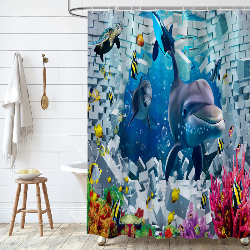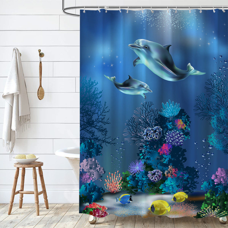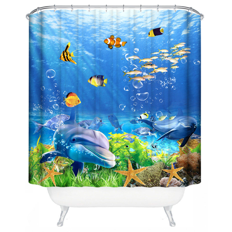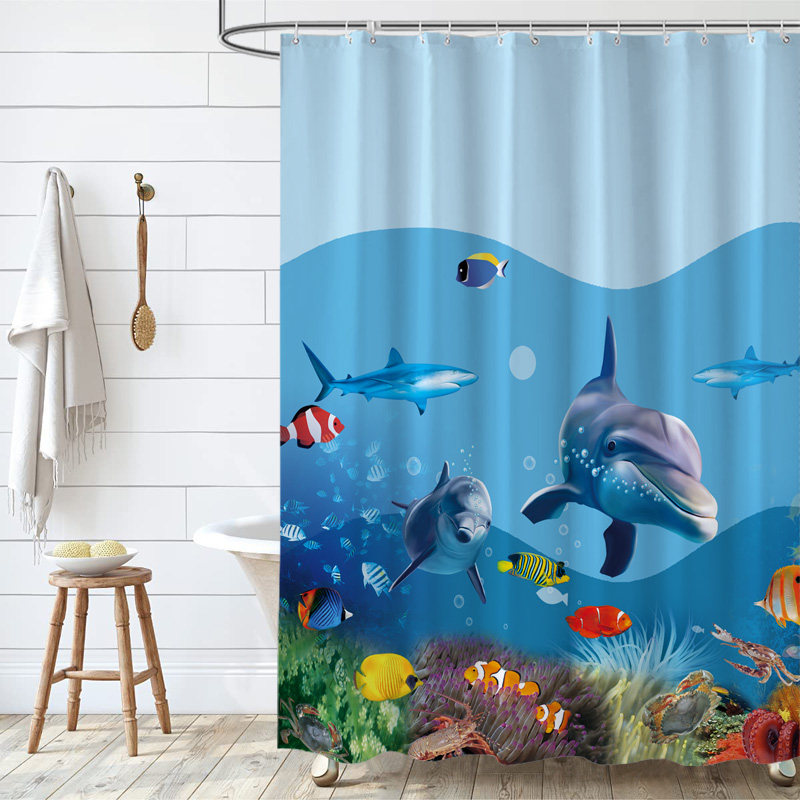 淘宝卡通海洋鱼浴帘卧室隔断帘加厚防水防霉布浴室挂帘门帘海豚窗帘