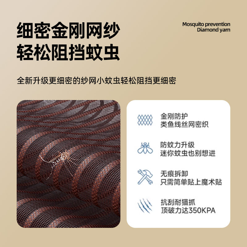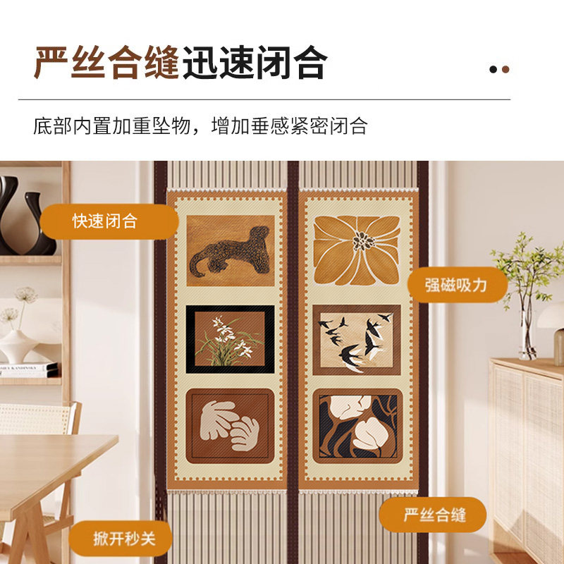 防蚊门帘全磁条夏季家用魔术贴磁性纱门,采用高强度金刚网材质,防蚊、防虫、透气耐用。门帘内置全周磁条与自吸磁铁,闭合紧密,开关自如,有效防止蚊虫进入。免打孔设计,搭配魔术贴安装,轻松贴合门框,不伤墙面,拆卸清洗方便。适用于家庭、阳台、厨房等多种场景,尤其适合夏季使用。磁性闭合迅速,大人小孩均可轻松通行,兼顾安全与便捷。美观实用,透光性好,既保障室内空气流通,又营造舒适无蚊的居住环境,是现代家庭理想的防蚊解决方案。