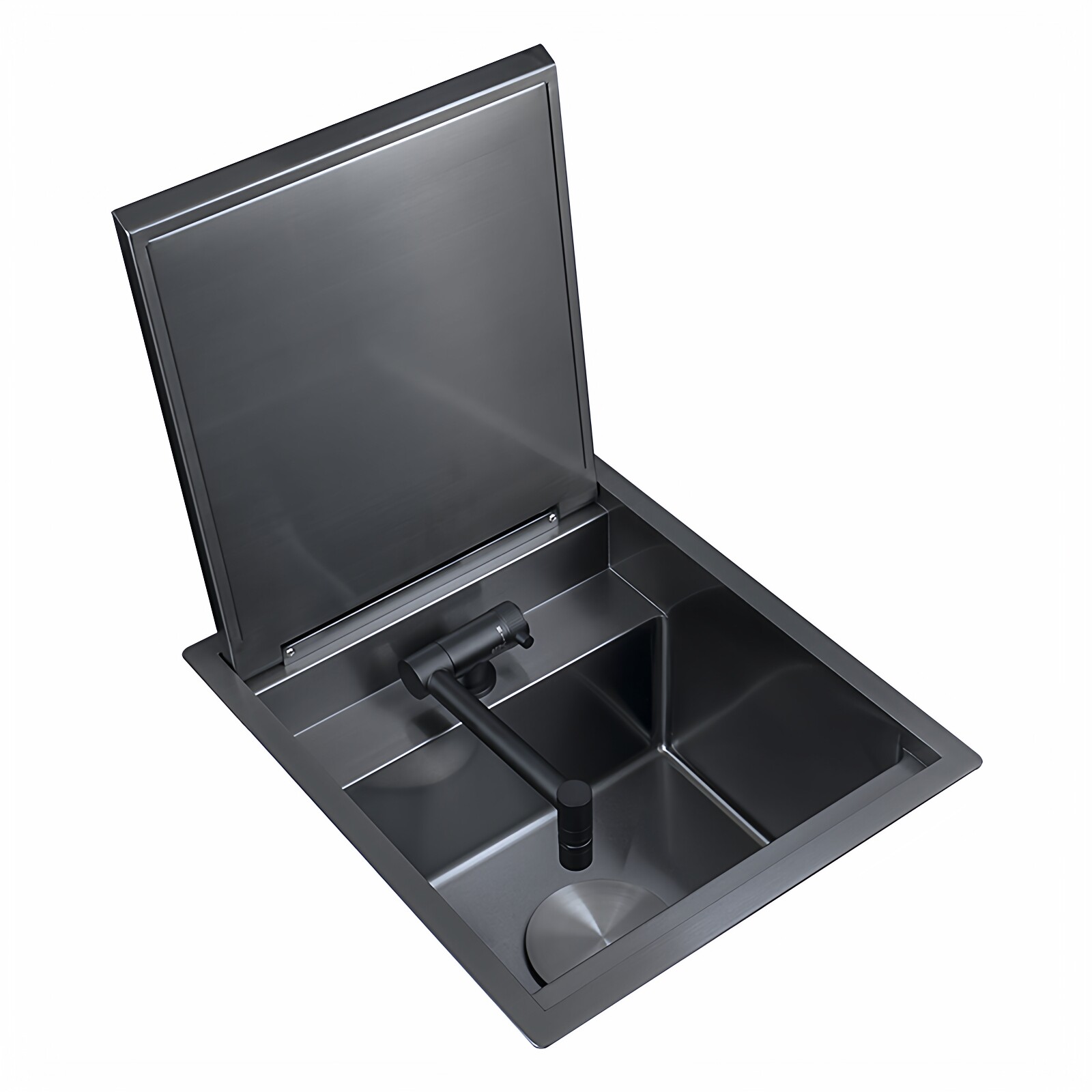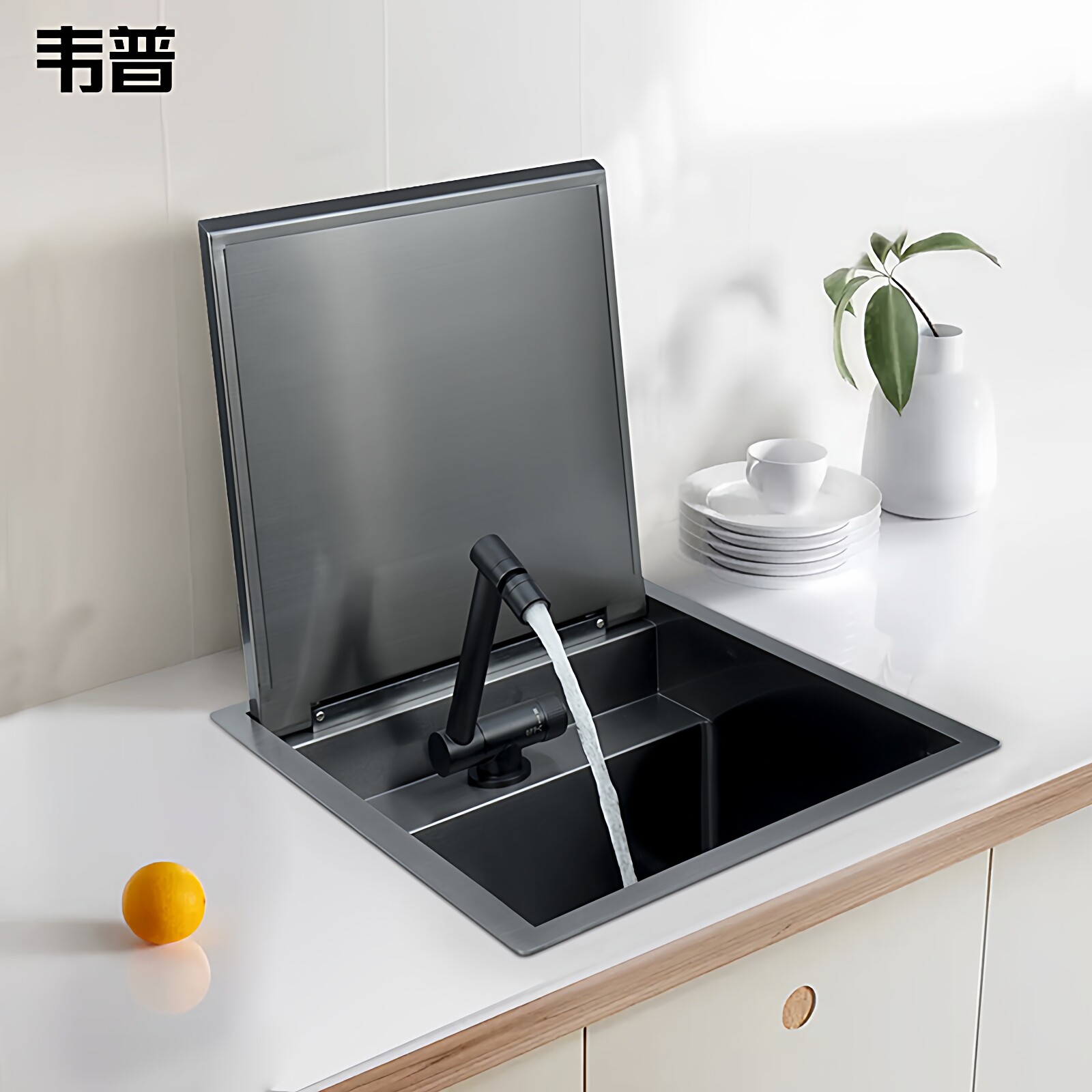 天猫韦普304不锈钢吧台隐形小水槽单槽中岛带阻尼盖板隐藏迷你洗菜盆