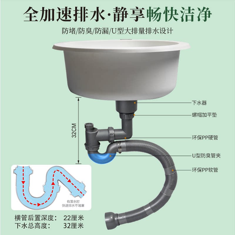 天猫意大利意狄讴石英石厨房圆形水槽家用西厨吧台小圆槽台下盆白7046