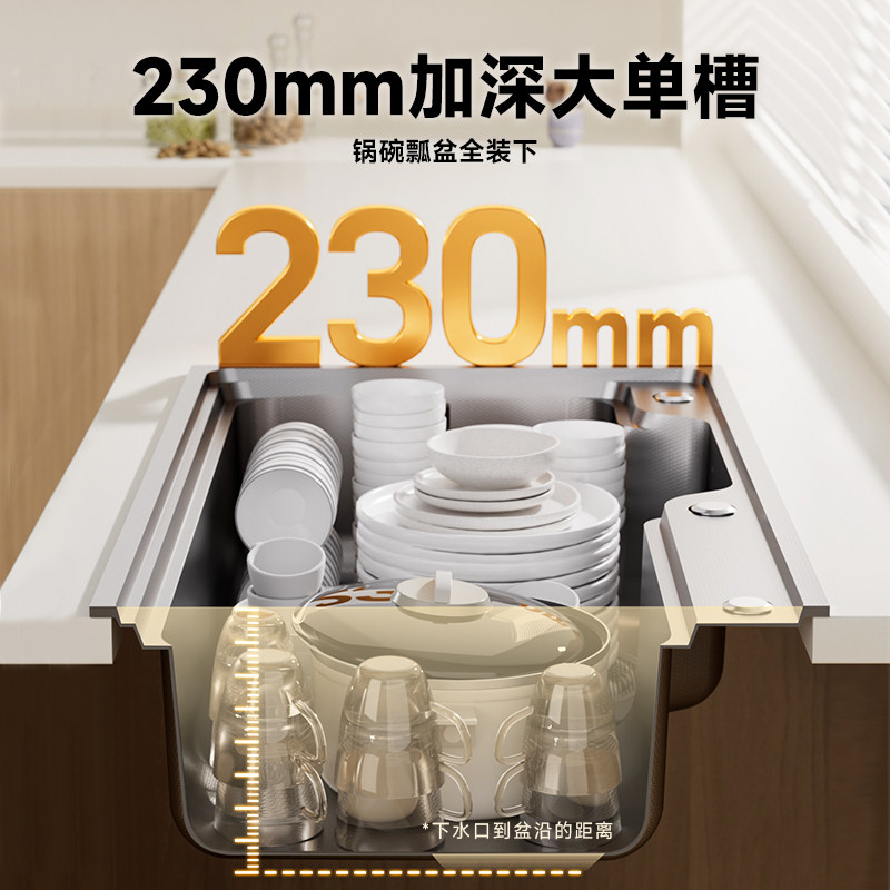 雨虹飞鱼厨房洗菜盆采用优质加厚304不锈钢材质,坚固耐用,抗腐蚀、耐高温,长期使用不生锈。大单槽设计,空间宽敞,轻松容纳锅碗瓢盆,满足家庭日常清洗需求。槽体深度适中,有效防止水花外溅,搭配多功能沥水篮和切菜板,实现洗、切、沥一体化操作,提升厨房效率。表面精细拉丝工艺,防刮耐磨,易于清洁,持久光亮如新。底部设有消音垫,有效降低水流噪音,营造安静烹饪环境。安装便捷,适配多种橱柜,是现代厨房的理想之选,兼顾实用性与美观性,为家庭带来便捷高效的清洁体验。