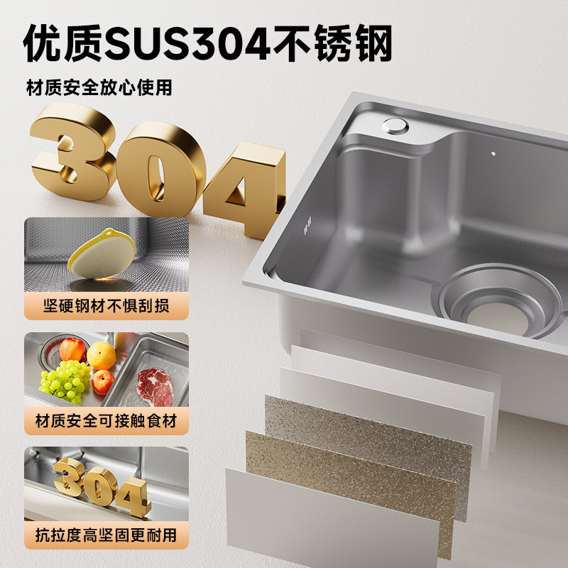 水槽单槽 侧排水304不锈钢洗菜盆厨房洗碗槽蜂窝压纹家用手工水池