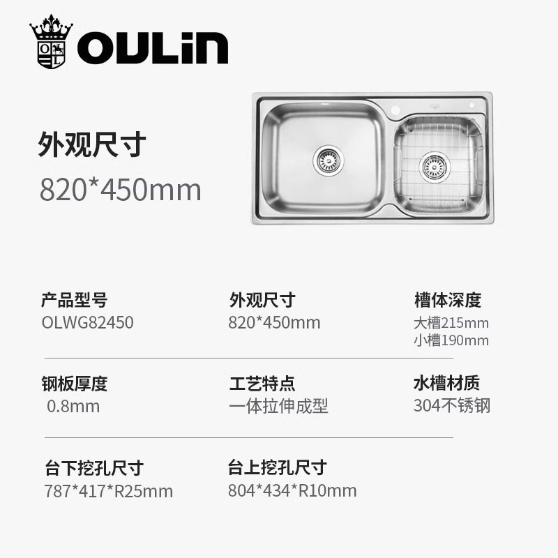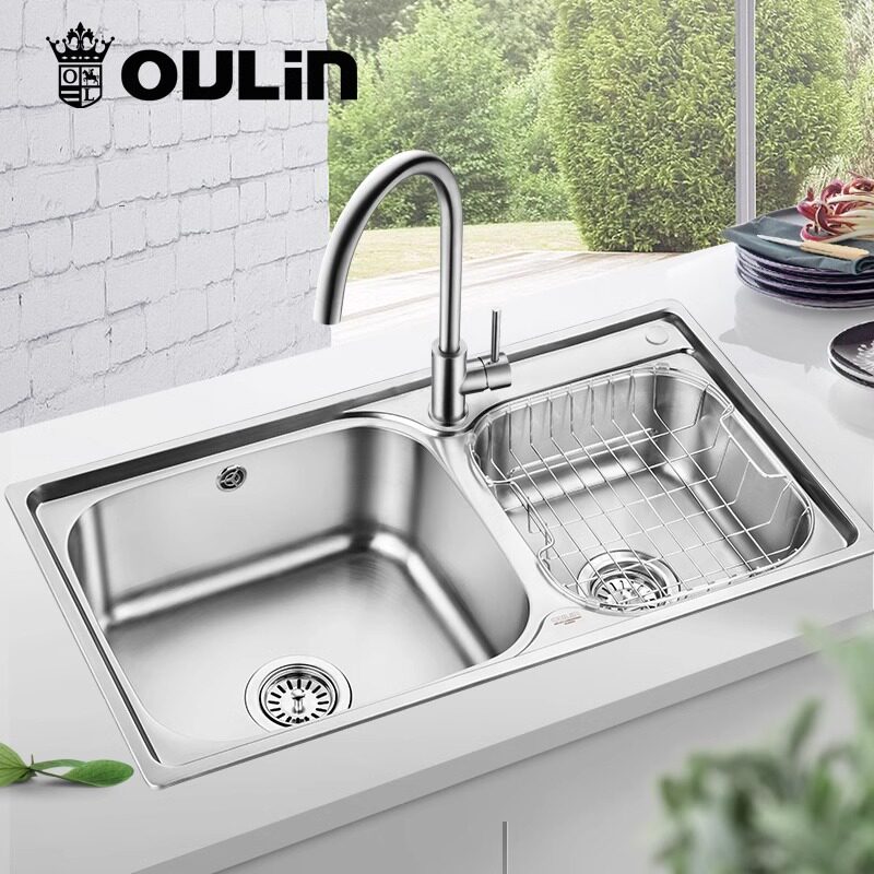 悍高水槽厨房304不锈钢大单槽家用洗碗洗菜盆洗手洗杯多功能水池