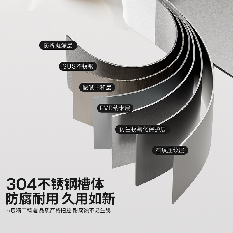 淘德国摩仕厨房水槽316L不锈钢面板加厚5mm日式大单槽火山纹洗菜盆
